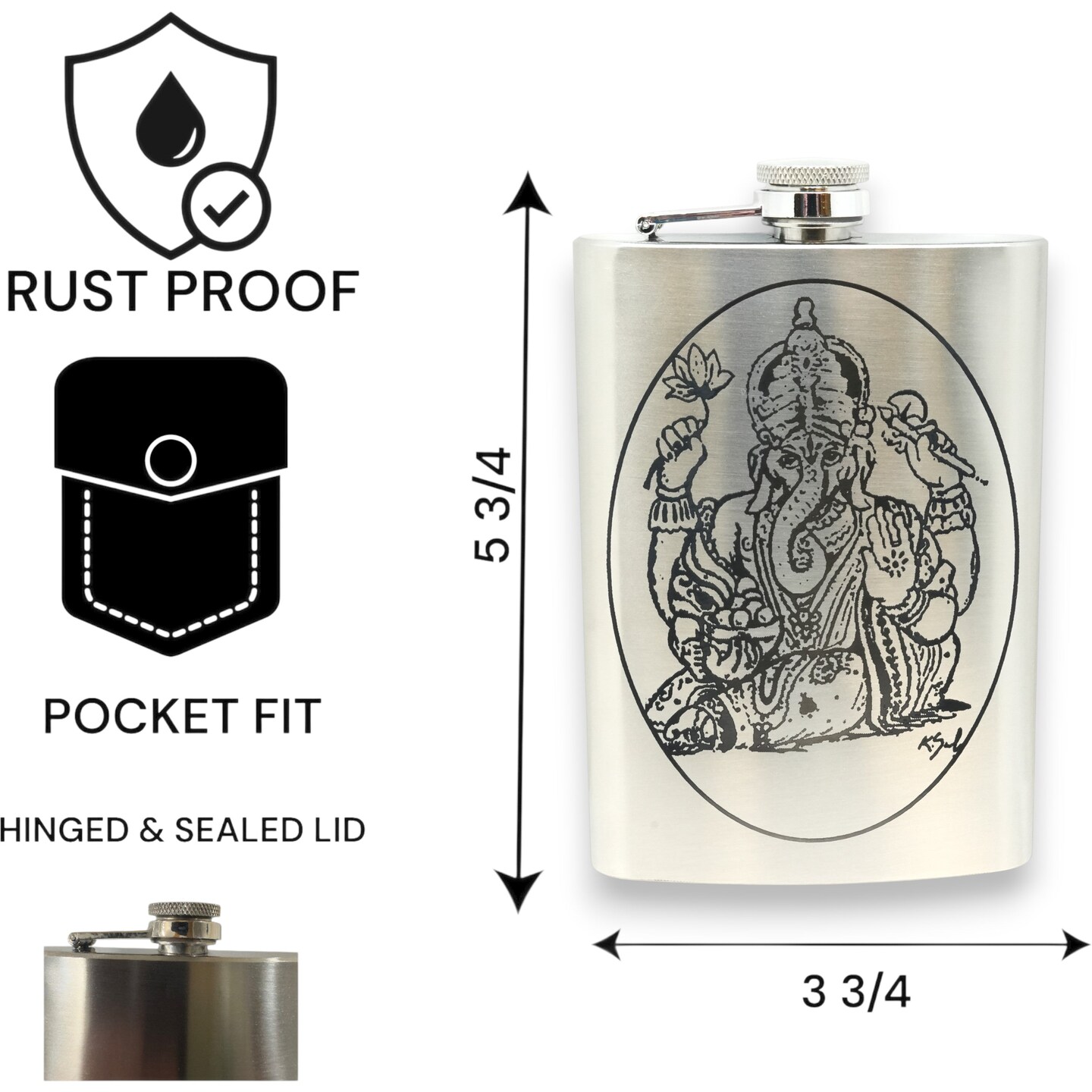 8oz Ganesha Stainless Steel Flask