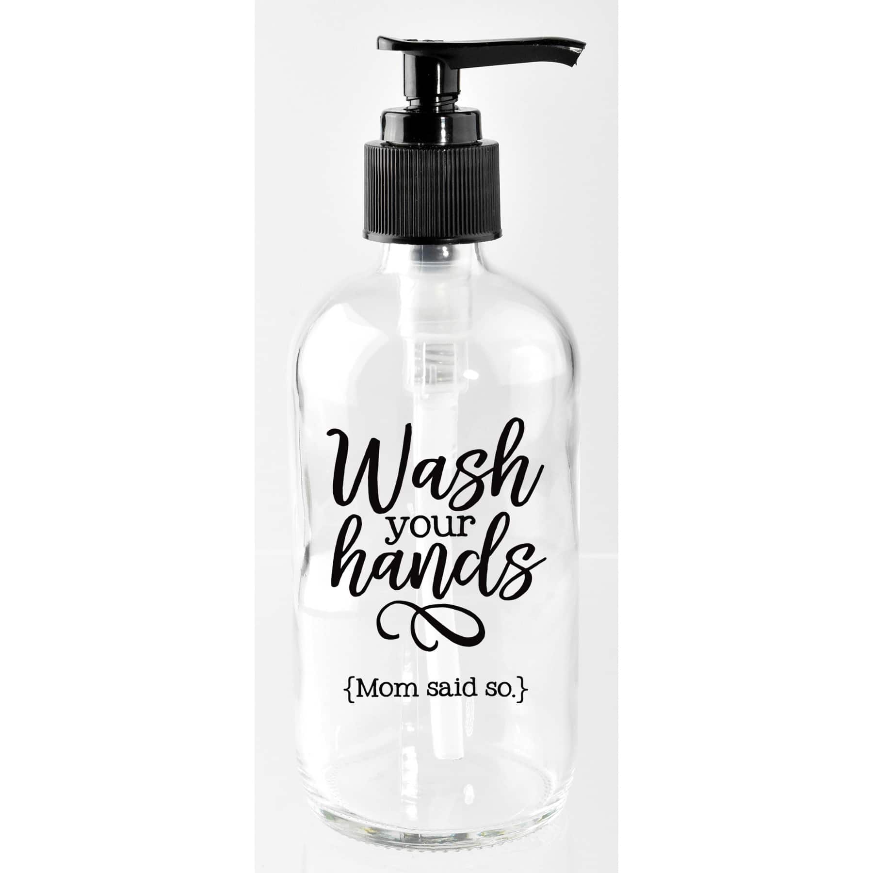 8oz. Wash Your Hands Mom Said So Glass Soap Dispenser