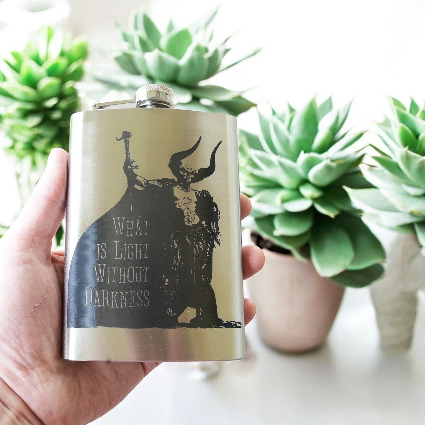 8oz What Is Light Without Darkness Stainless Steel Flask