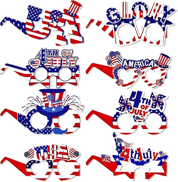 8-Pack 4th of July American Flag Paper Sunglasses, USA Patriotic Party Glasses and Photobooth Props for Independence Day, Memorial Day, Labor Day, and Party Favors