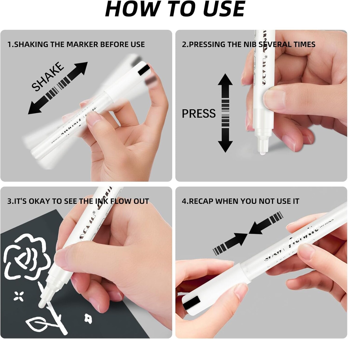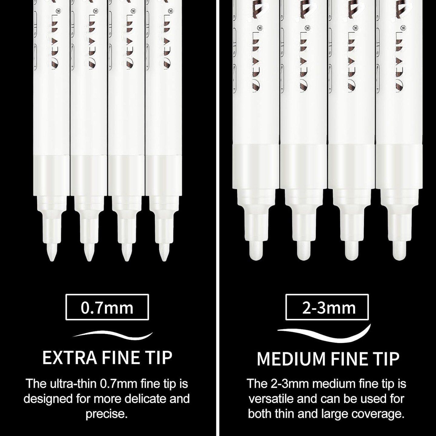 8-Pack White Acrylic Paint Pens – Medium (2–3mm) & Extra Fine (0.7mm) Tips for Multi-Surface Art, DIY Crafts, Rock Painting, Wood, Metal, Fabric, Glass & Ceramic