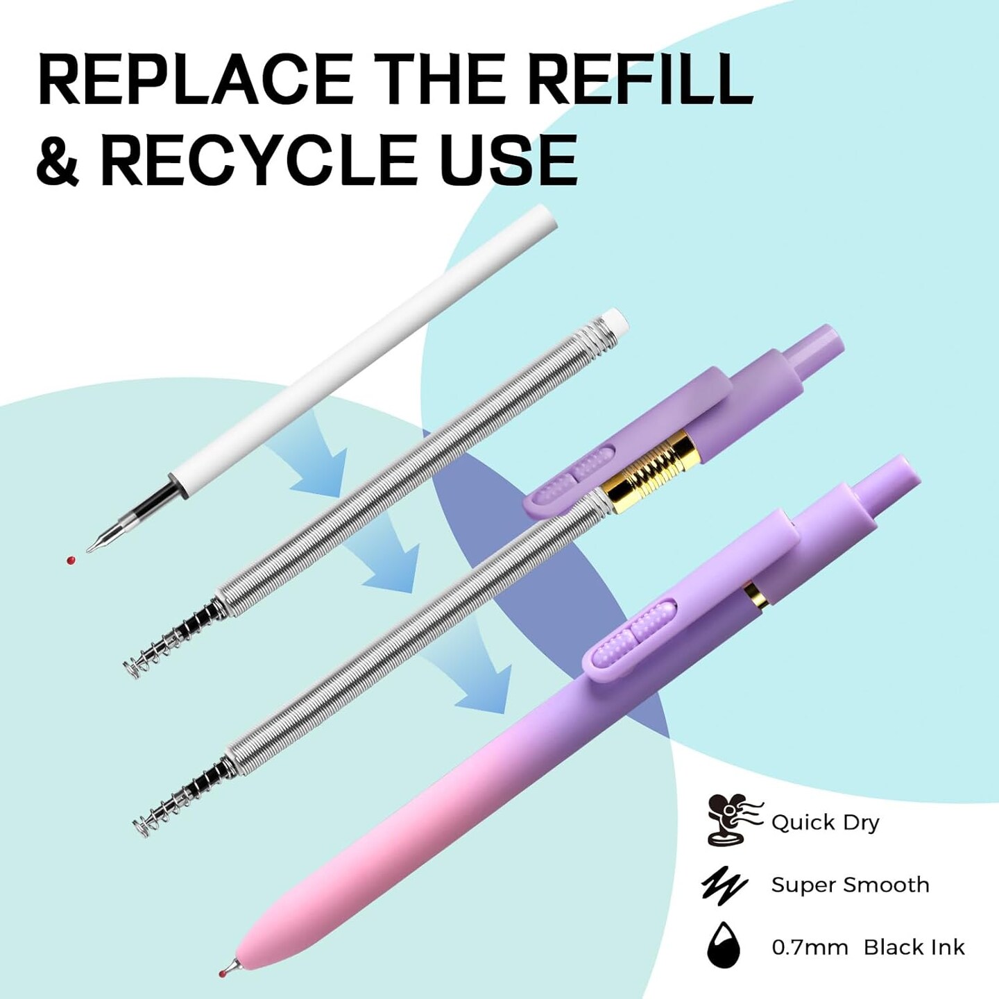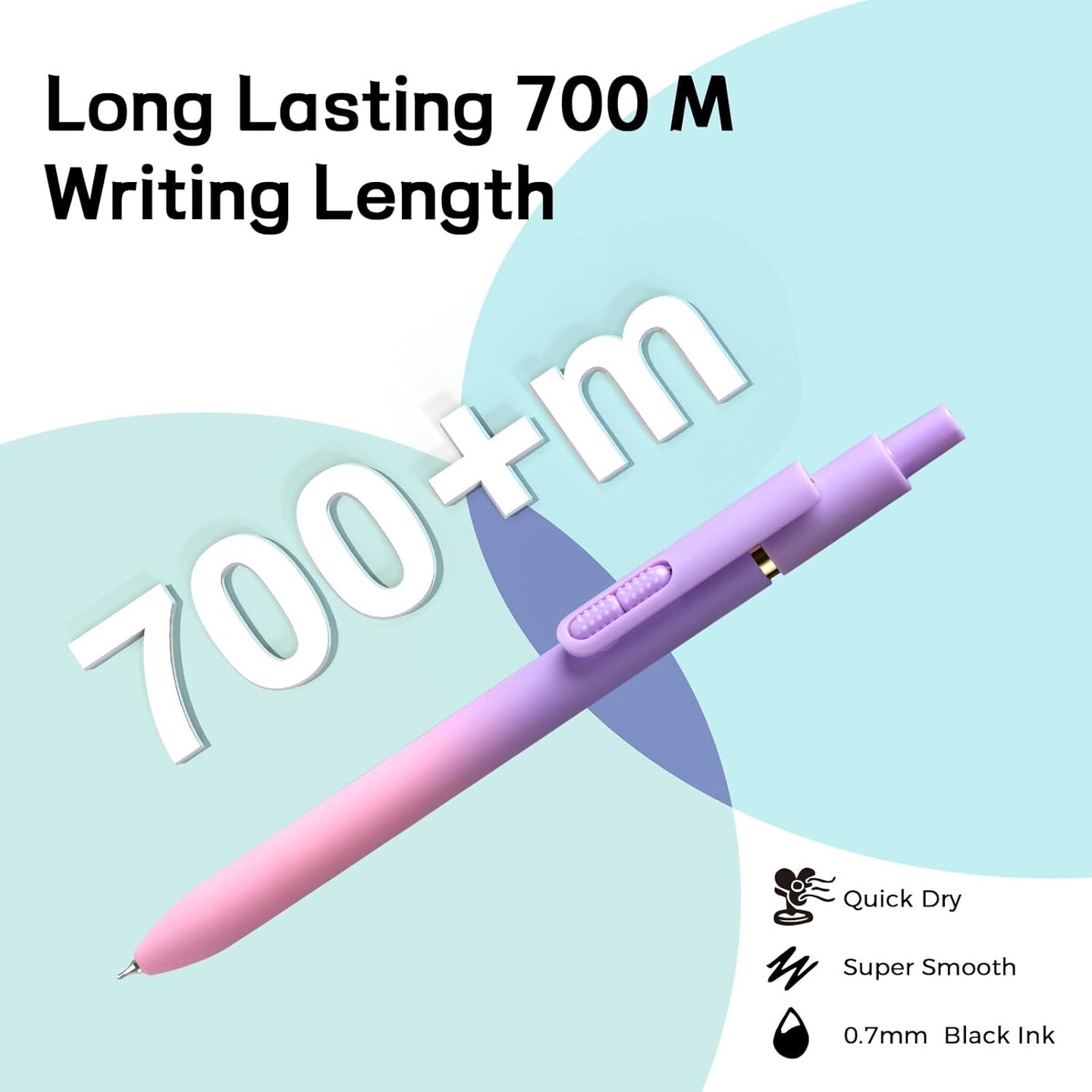 8pc Gel Pens 0.7mm Black Ink Medium Tip - Fast-Dry, No Bleed, Gradient Colors for Office & School