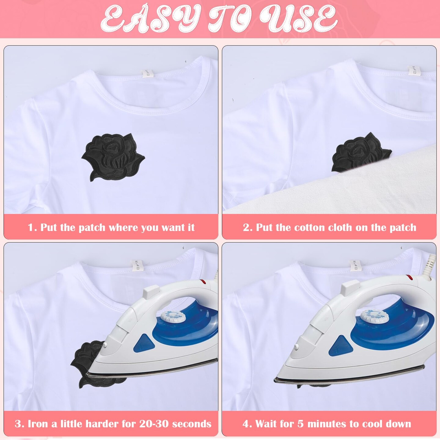 8pcs Black Iron On Rose Flower Patches for Clothes Designs Fabric Repair Patches 4 Size Embroidered Sew On Flower Patches Cool Applique Patches for Jacket Jeans Sweater Hats Shoes Bags for Women