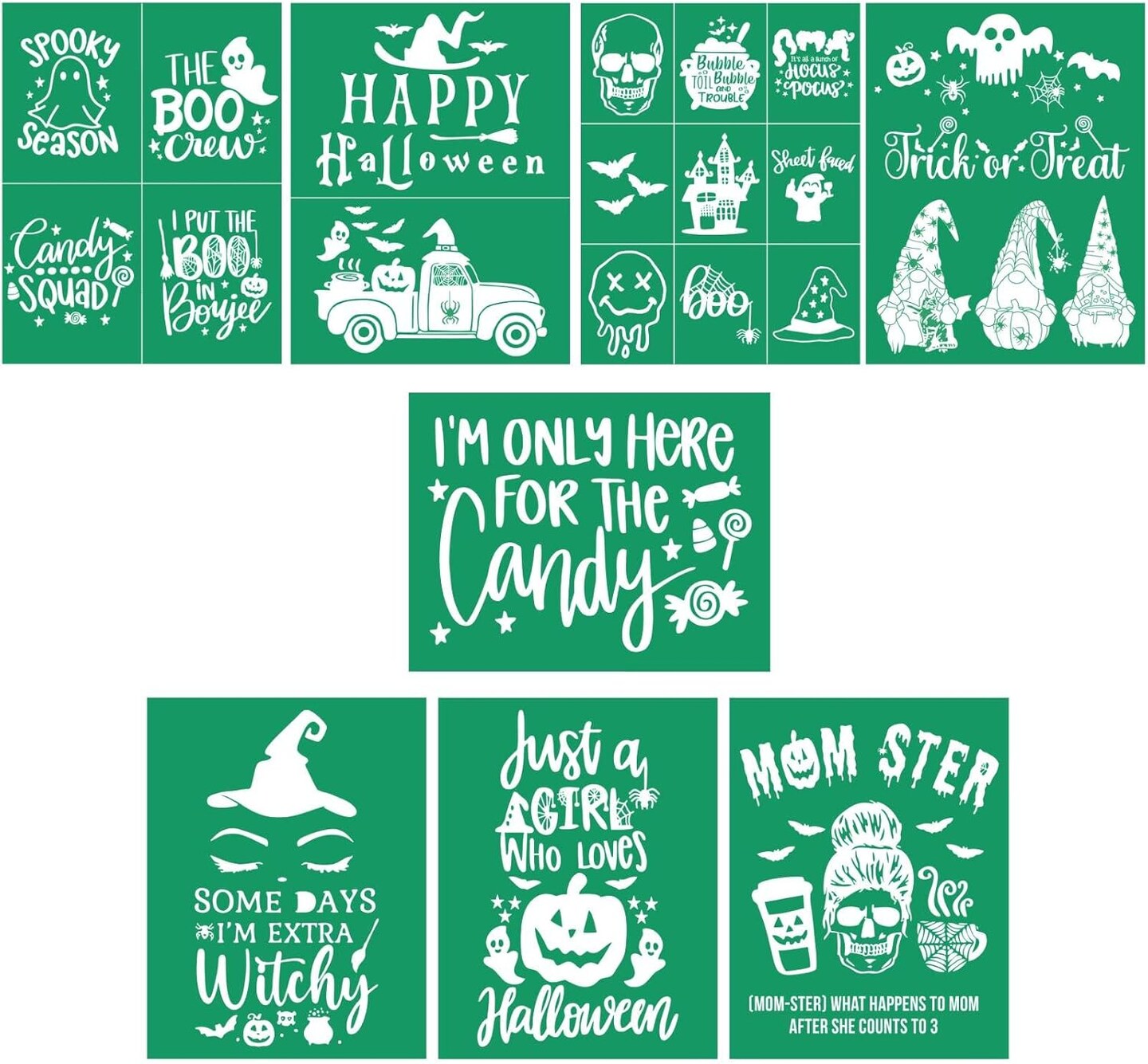 8PCS Halloween Self-Adhesive Silk Screen Stencils