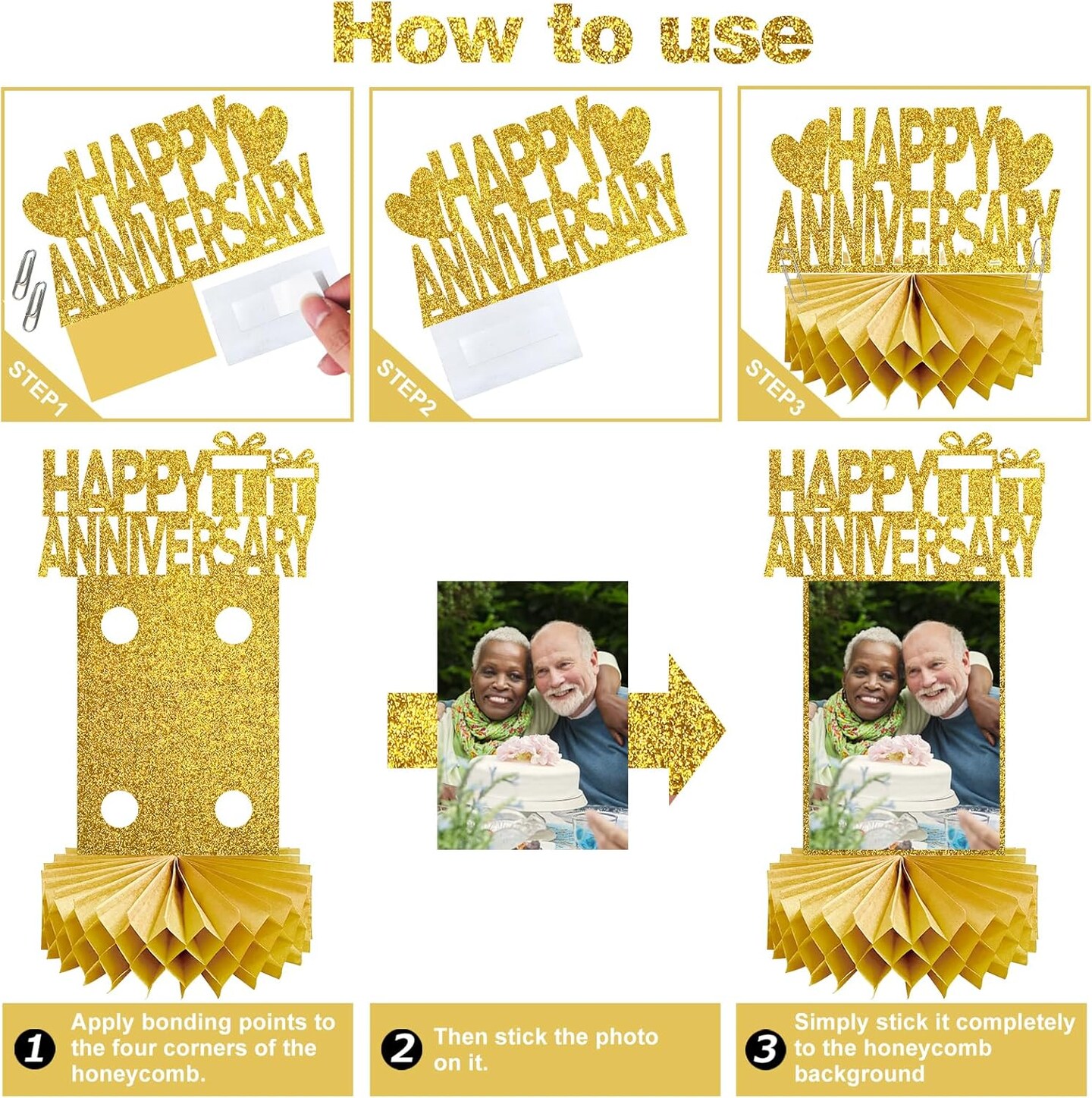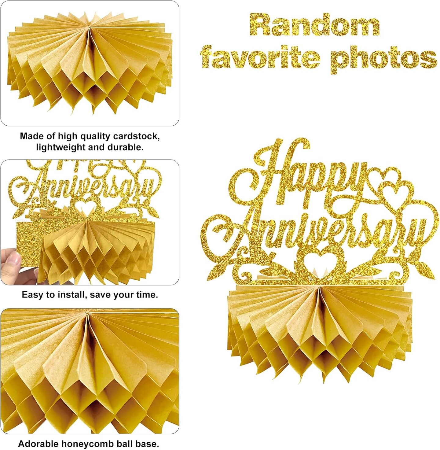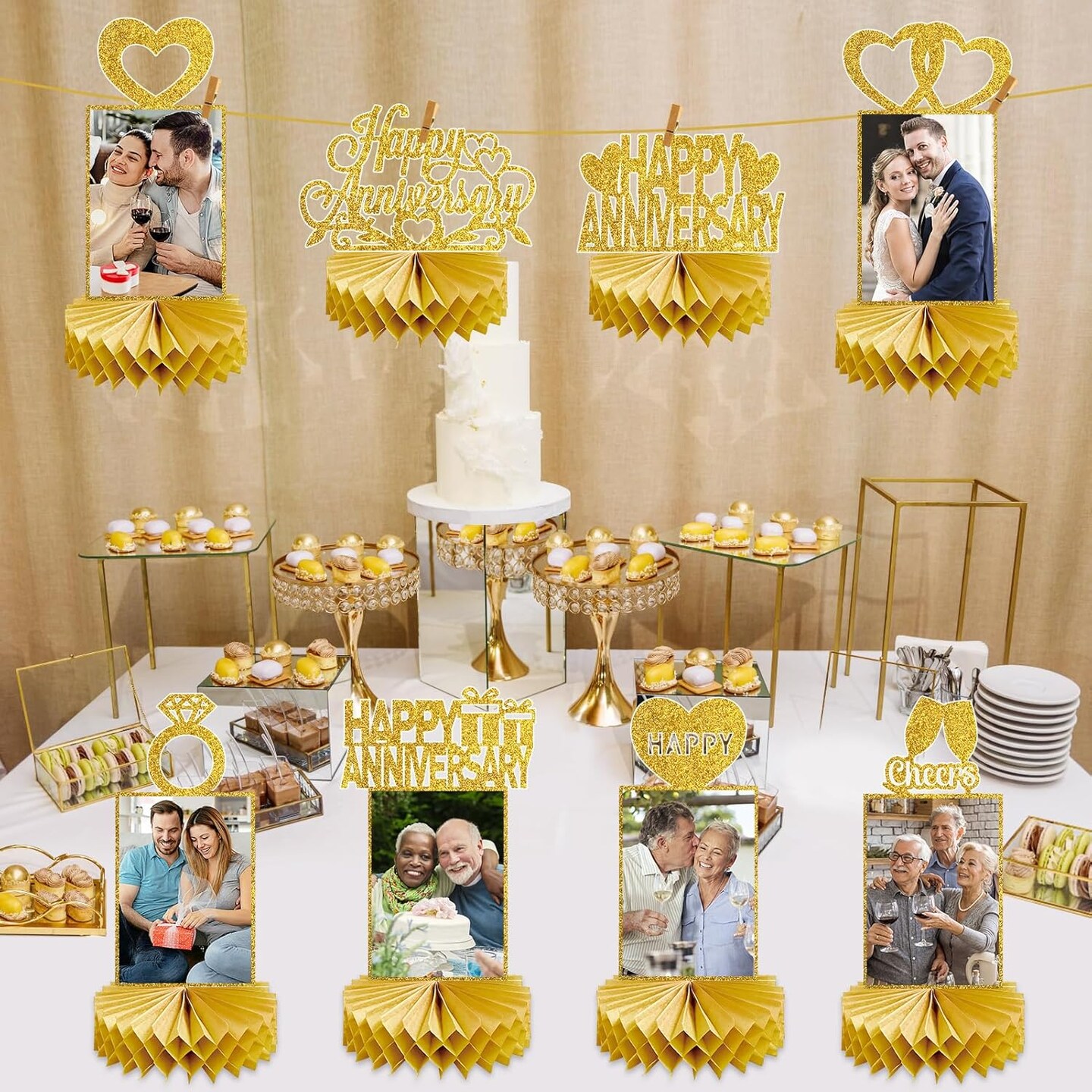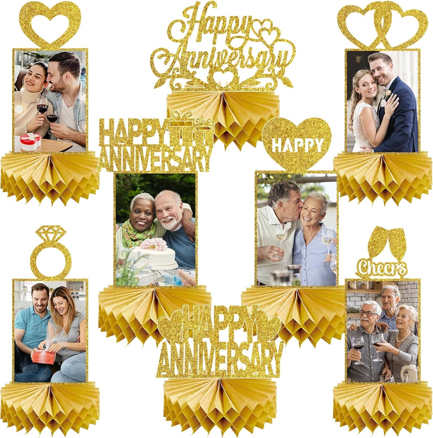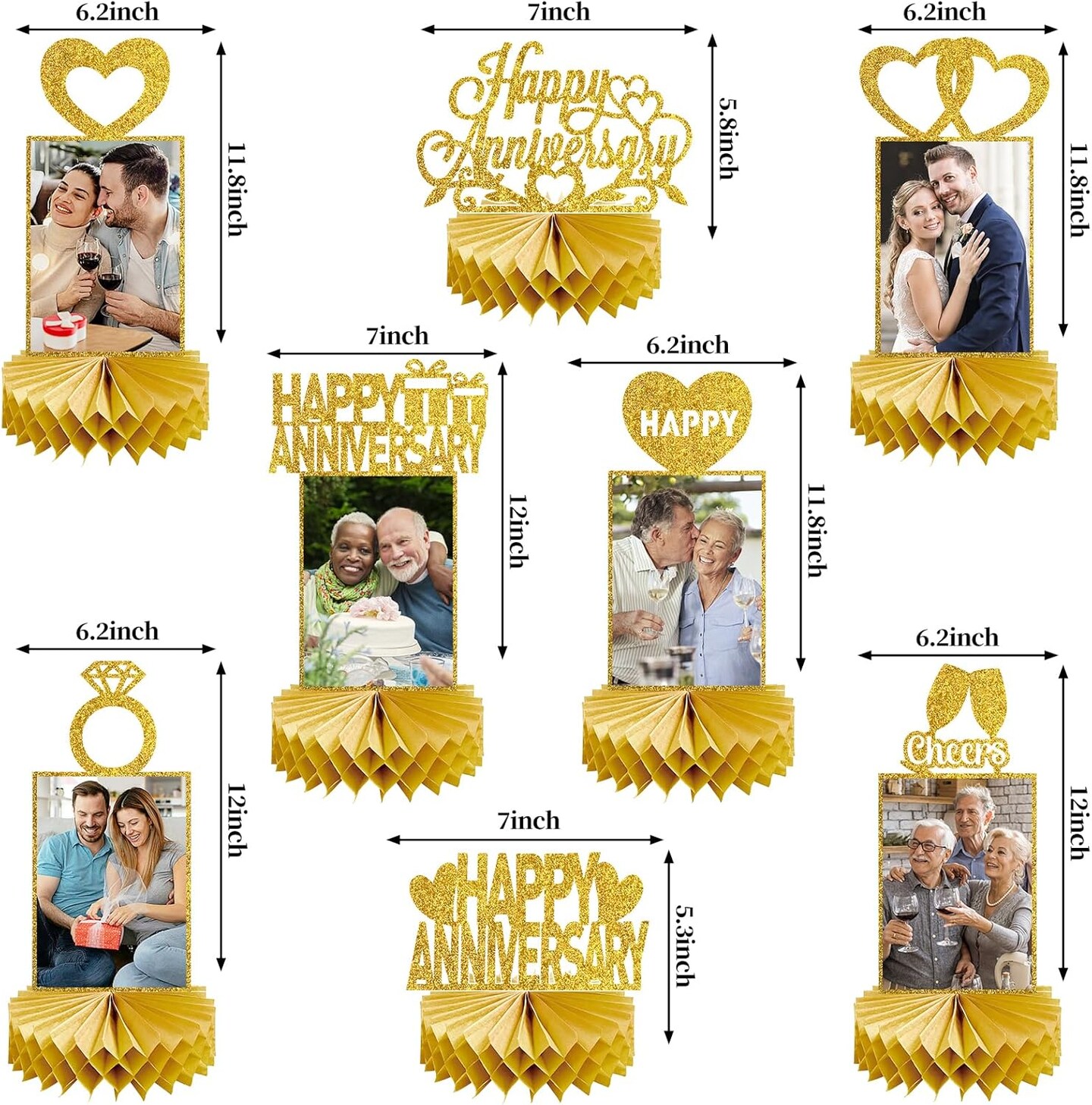 8Pcs Happy Anniversary Honeycomb Centerpiece (Gold)