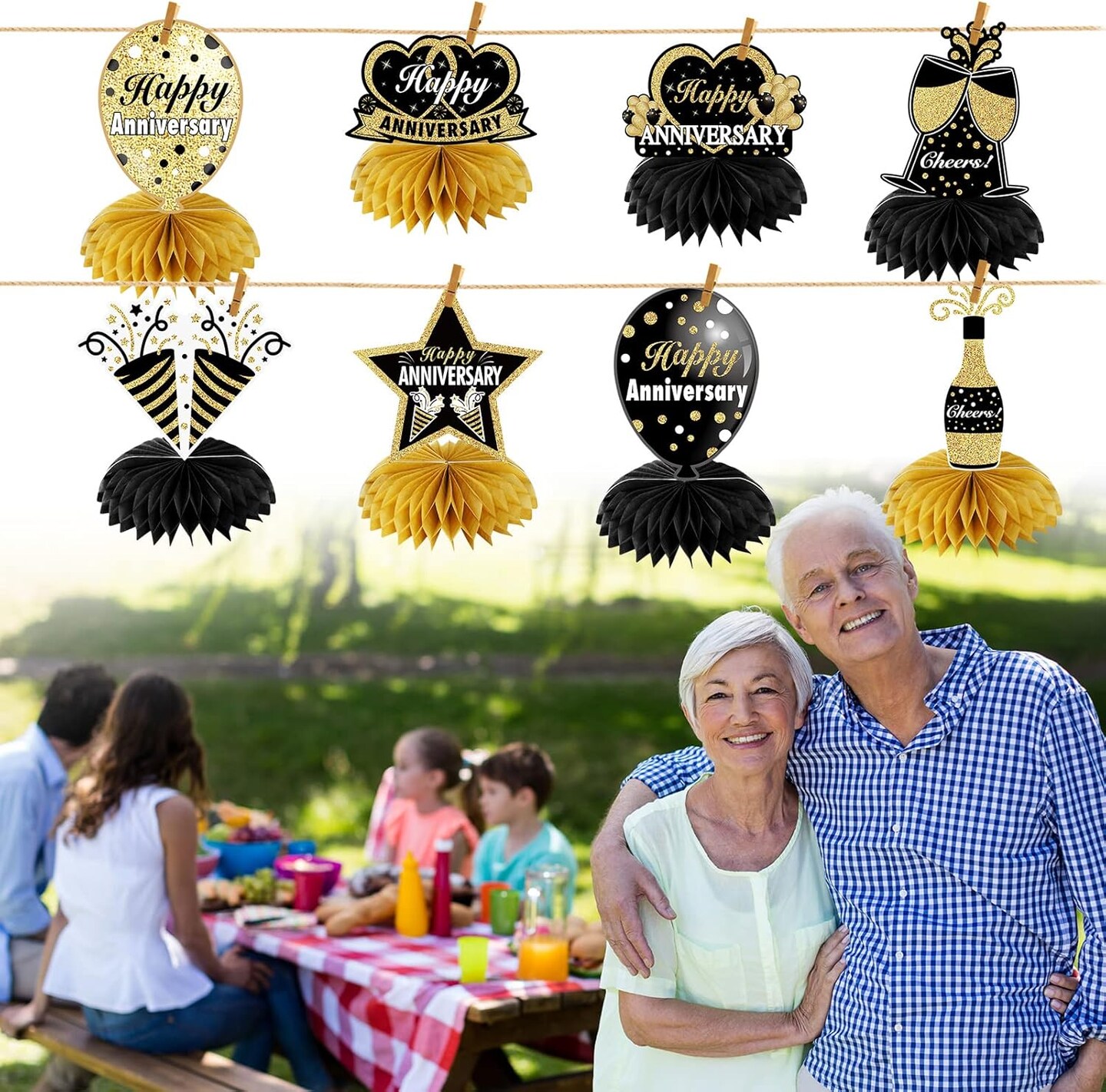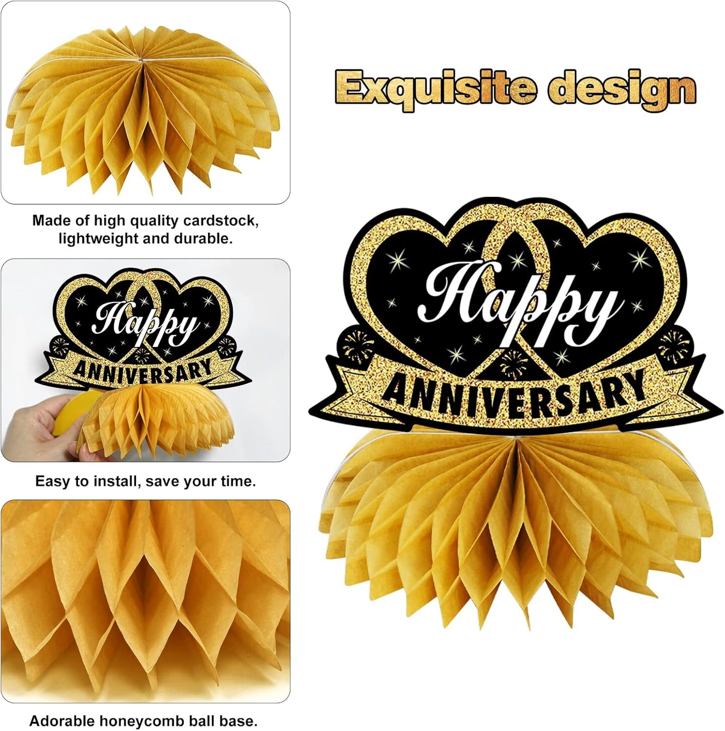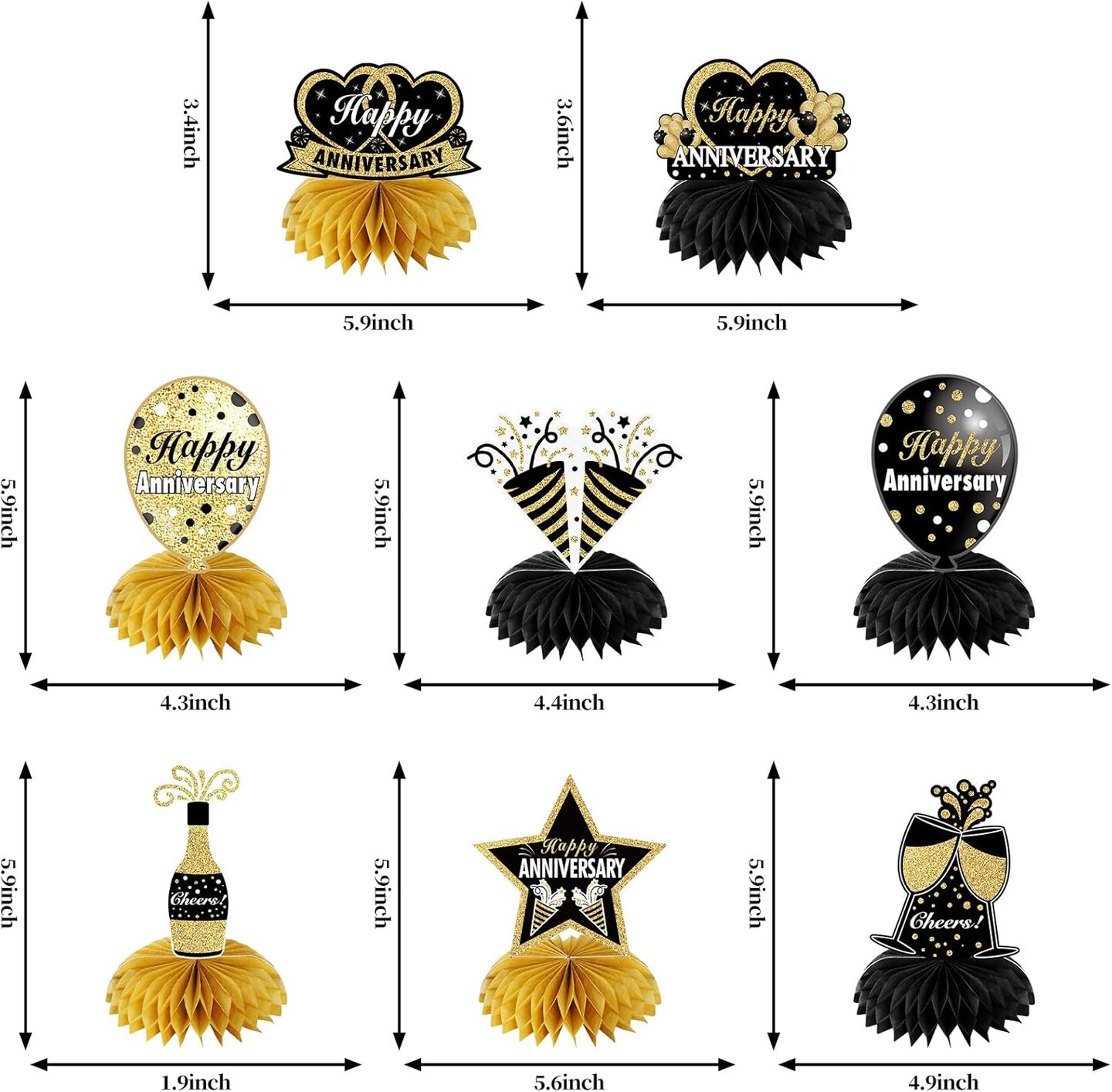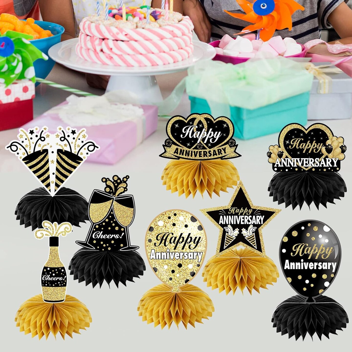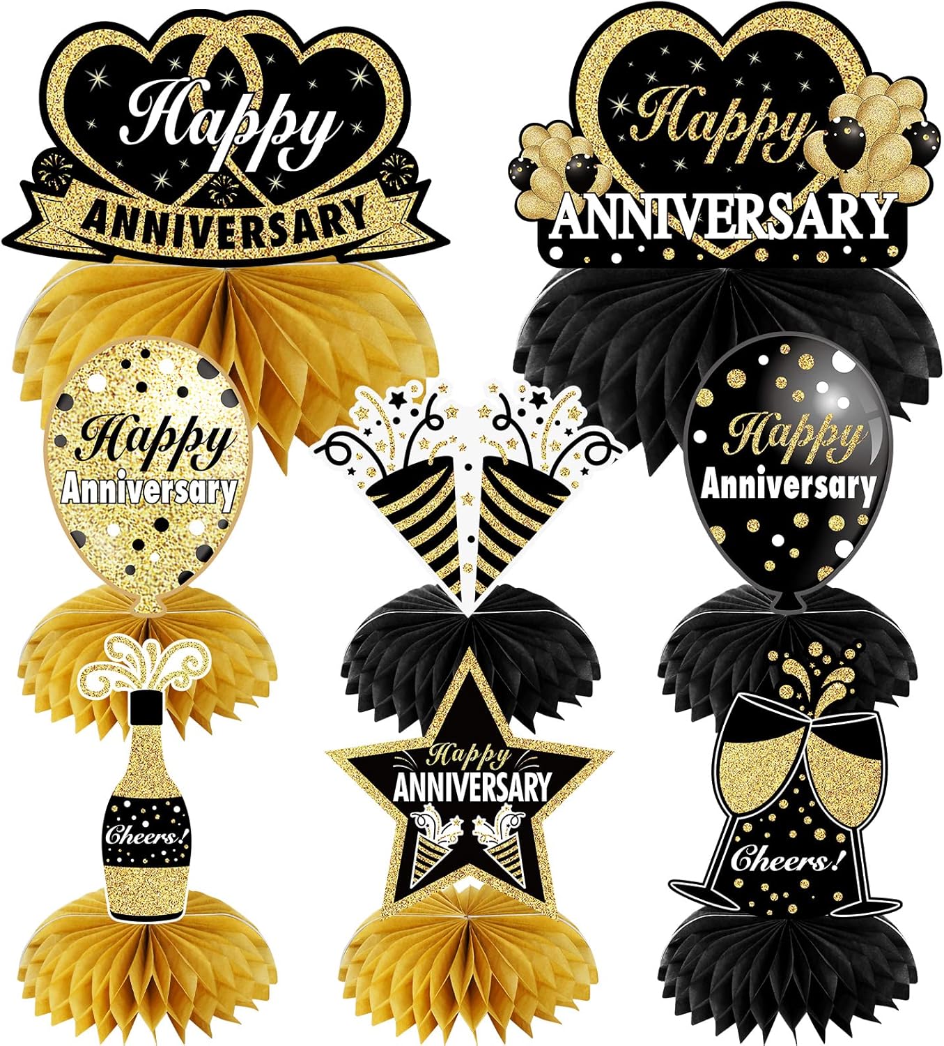 8Pcs Happy Wedding Anniversary Decorations Table Honeycomb Centerpieces