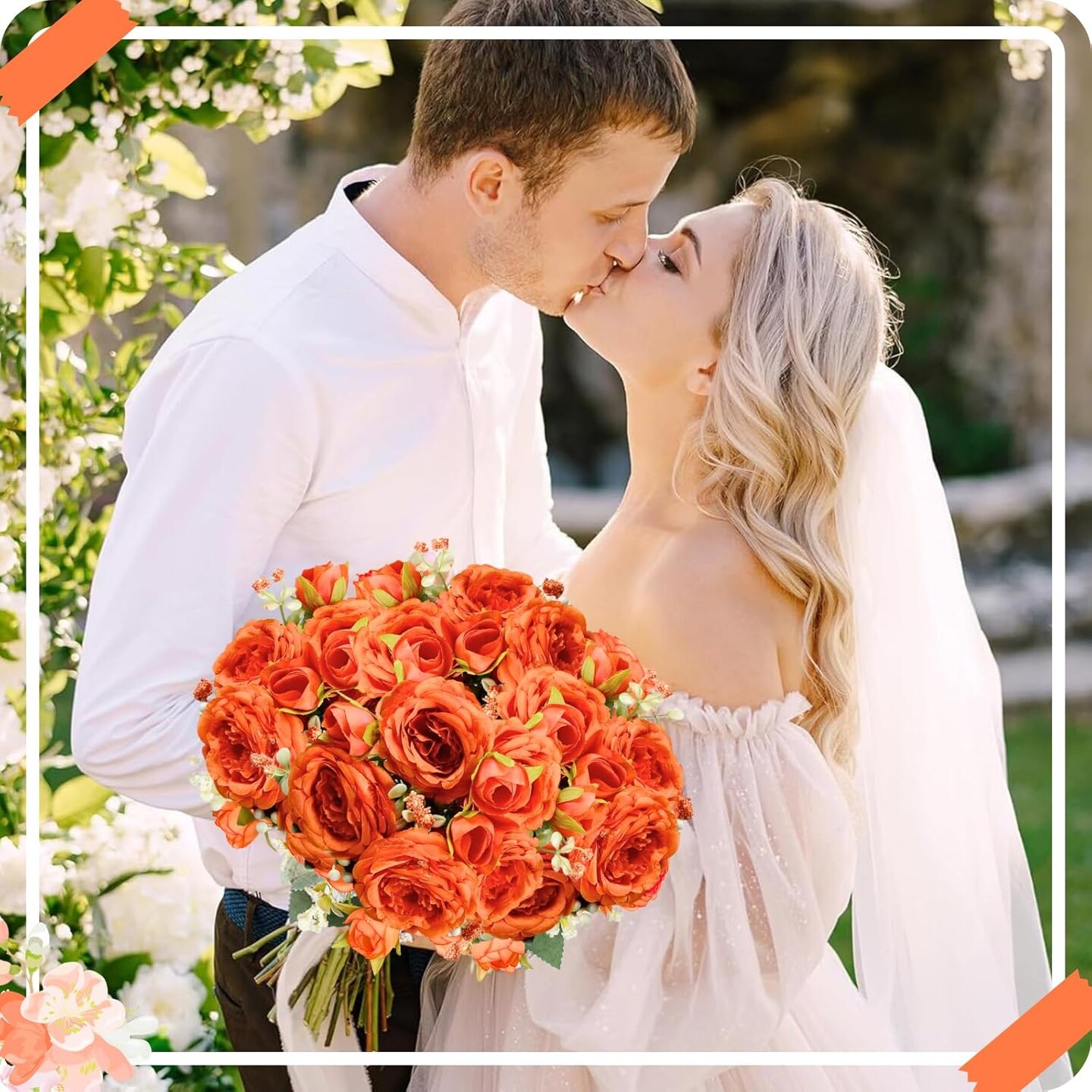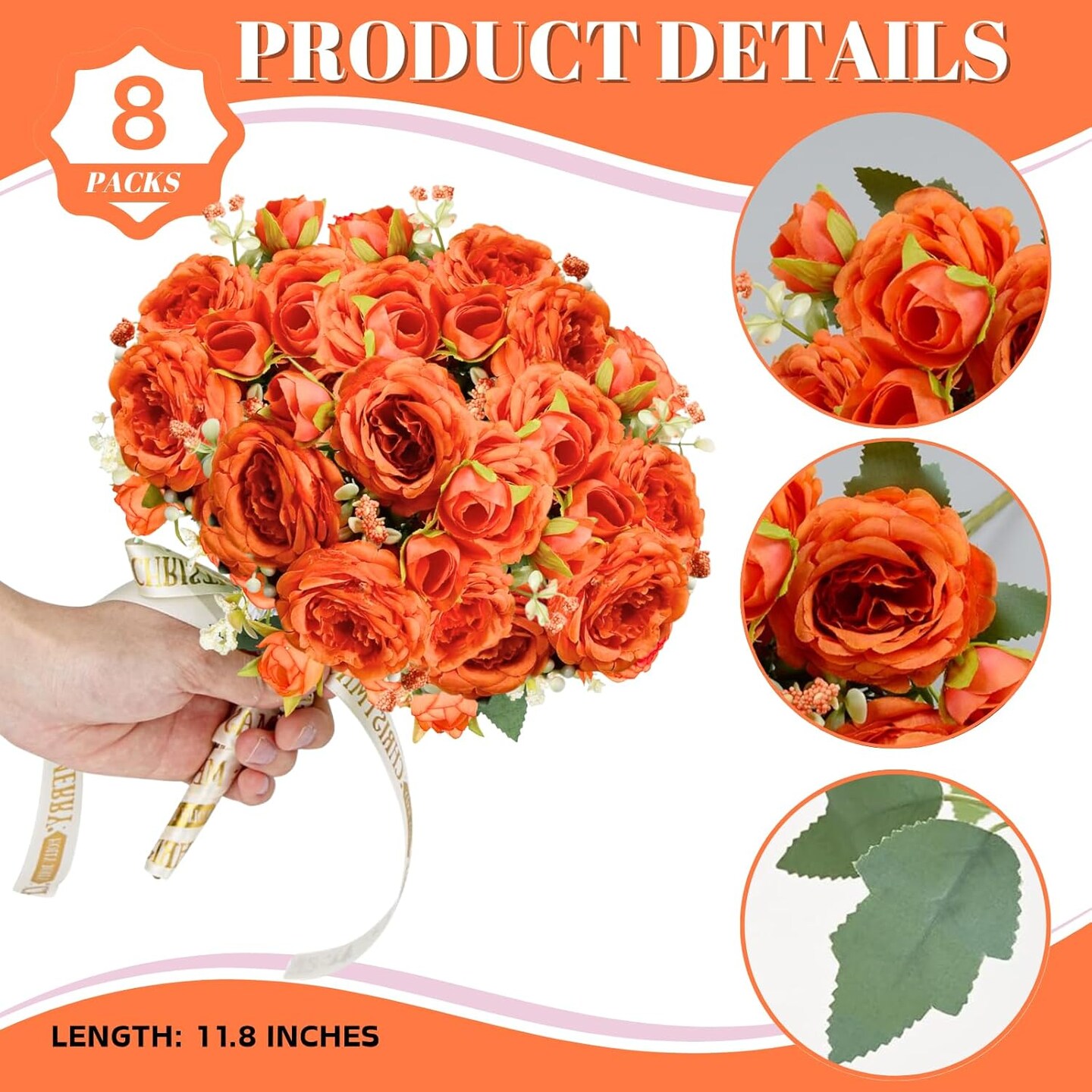 8Pcs Peonies Artificial Flowers - Burnt Orange