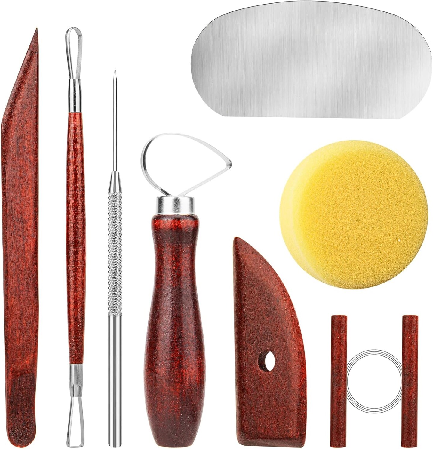 8PCS Stained Wooden Pottery Sculpting Tools, Wood Clay Cleaning Tool Set