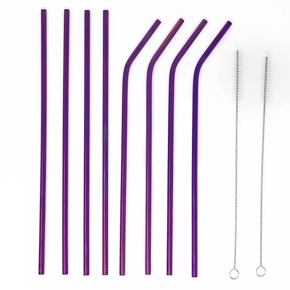 8-Piece 10.5" Stainless Steel Cocktail Straw Set with 2 Cleaning Brushes