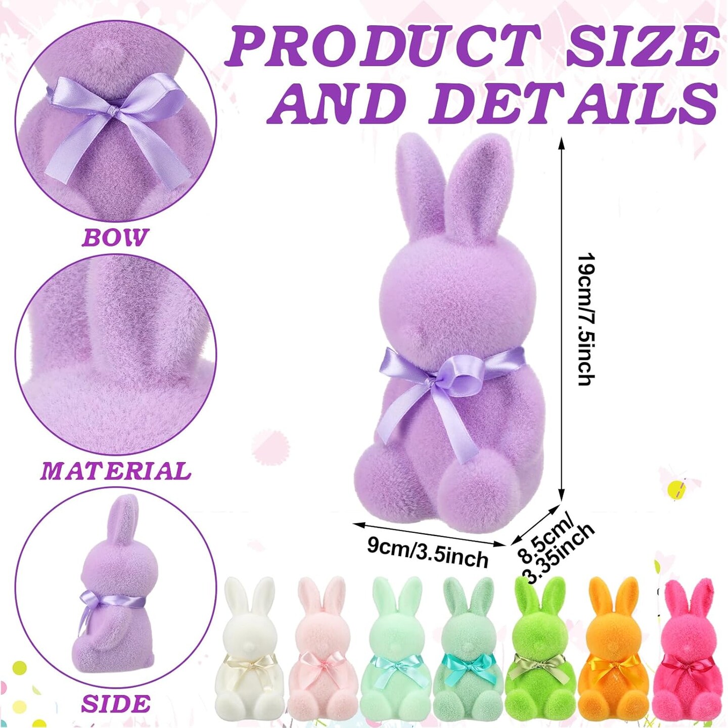 8-Piece Flocked Bunny Figurines Set – 6.9-Inch Easter Decorations with Bowtie, Perfect for Spring Centerpieces, Garden, Lawn, Tabletop, Nursery, Party & Holiday Decor
