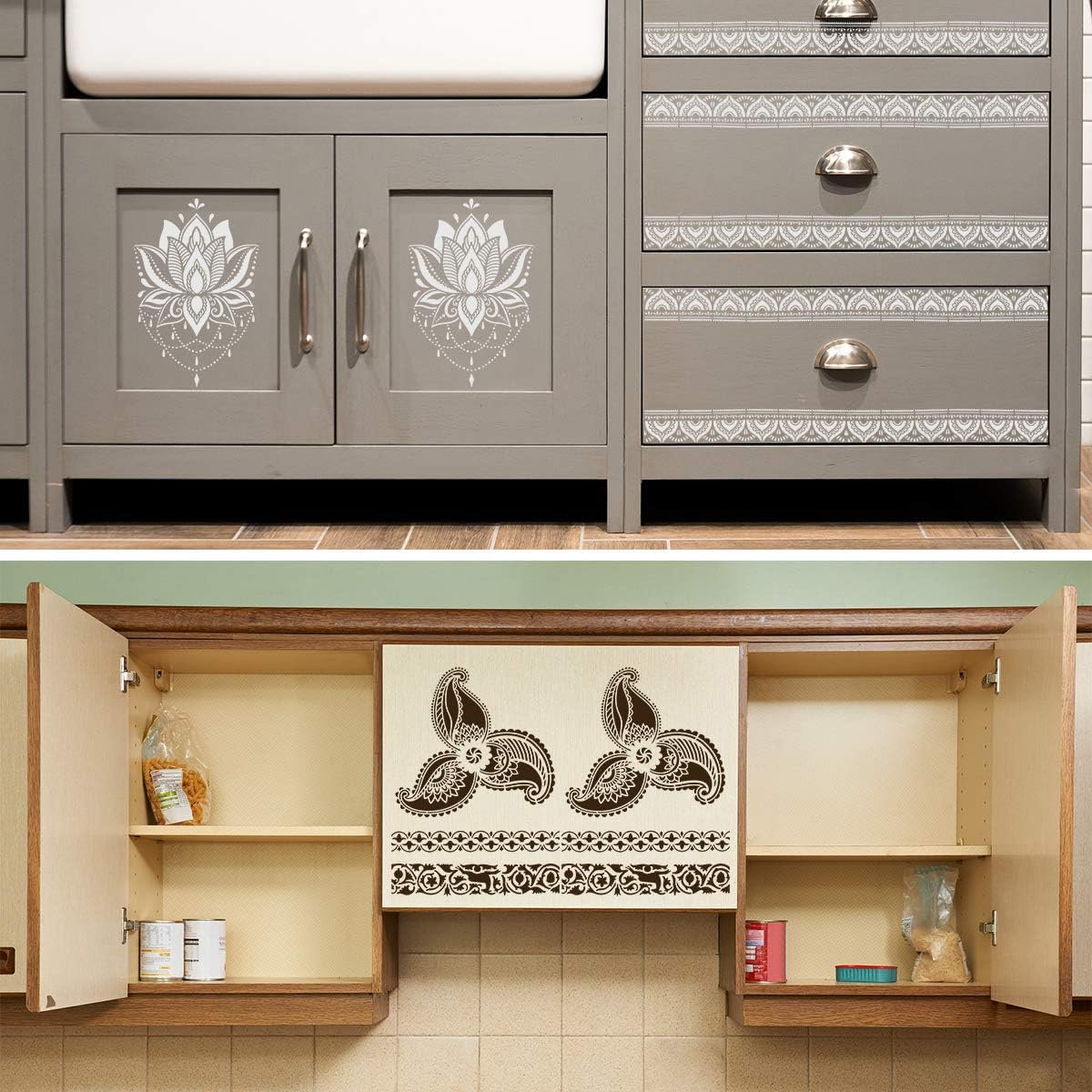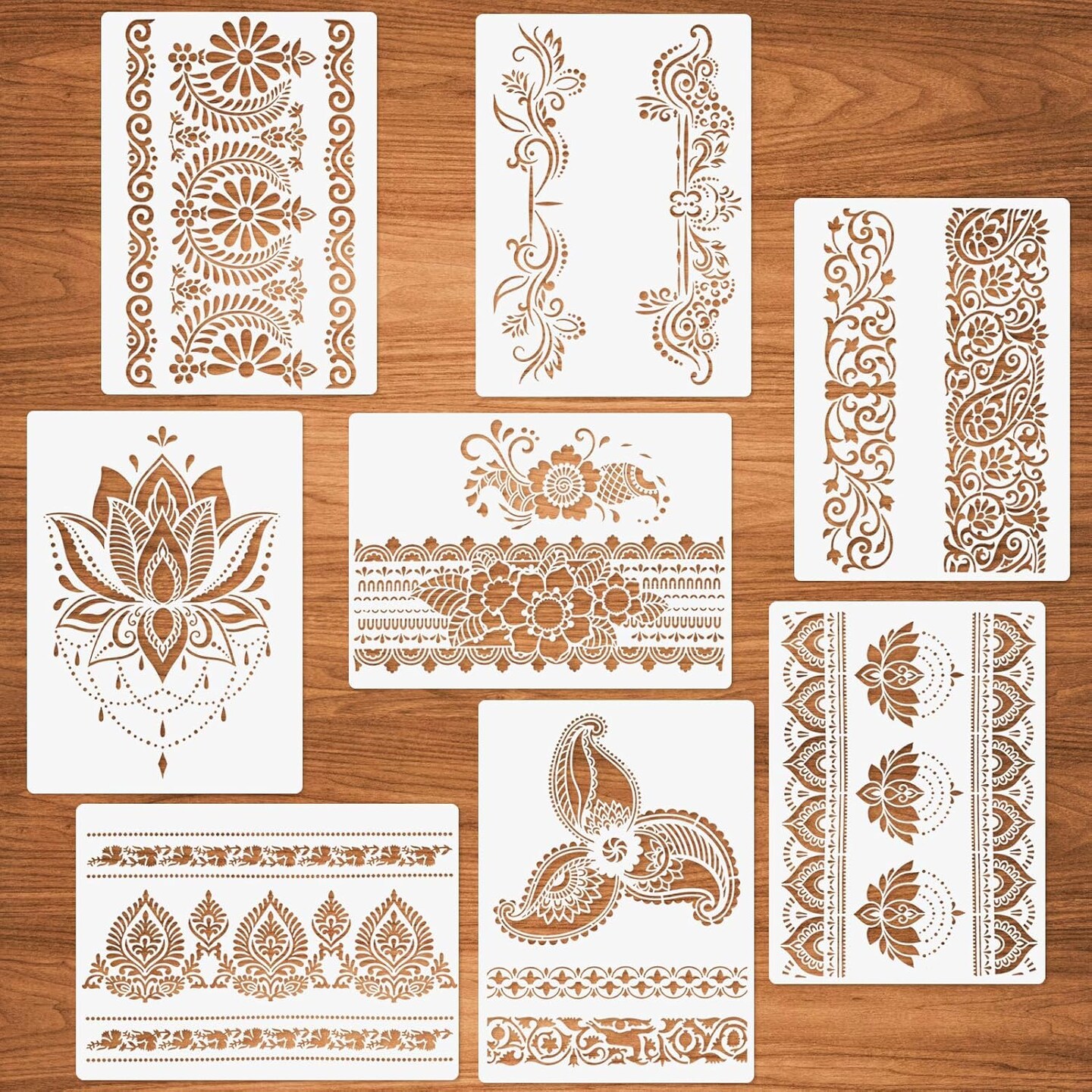 8-Piece Flower Border Mandala Stencil Set (8.3"x11.8") – Reusable Mylar Templates for Painting on Wood, Canvas, Paper & DIY Crafts