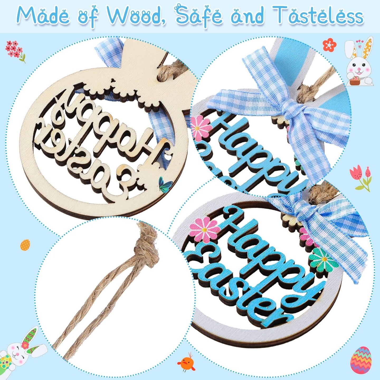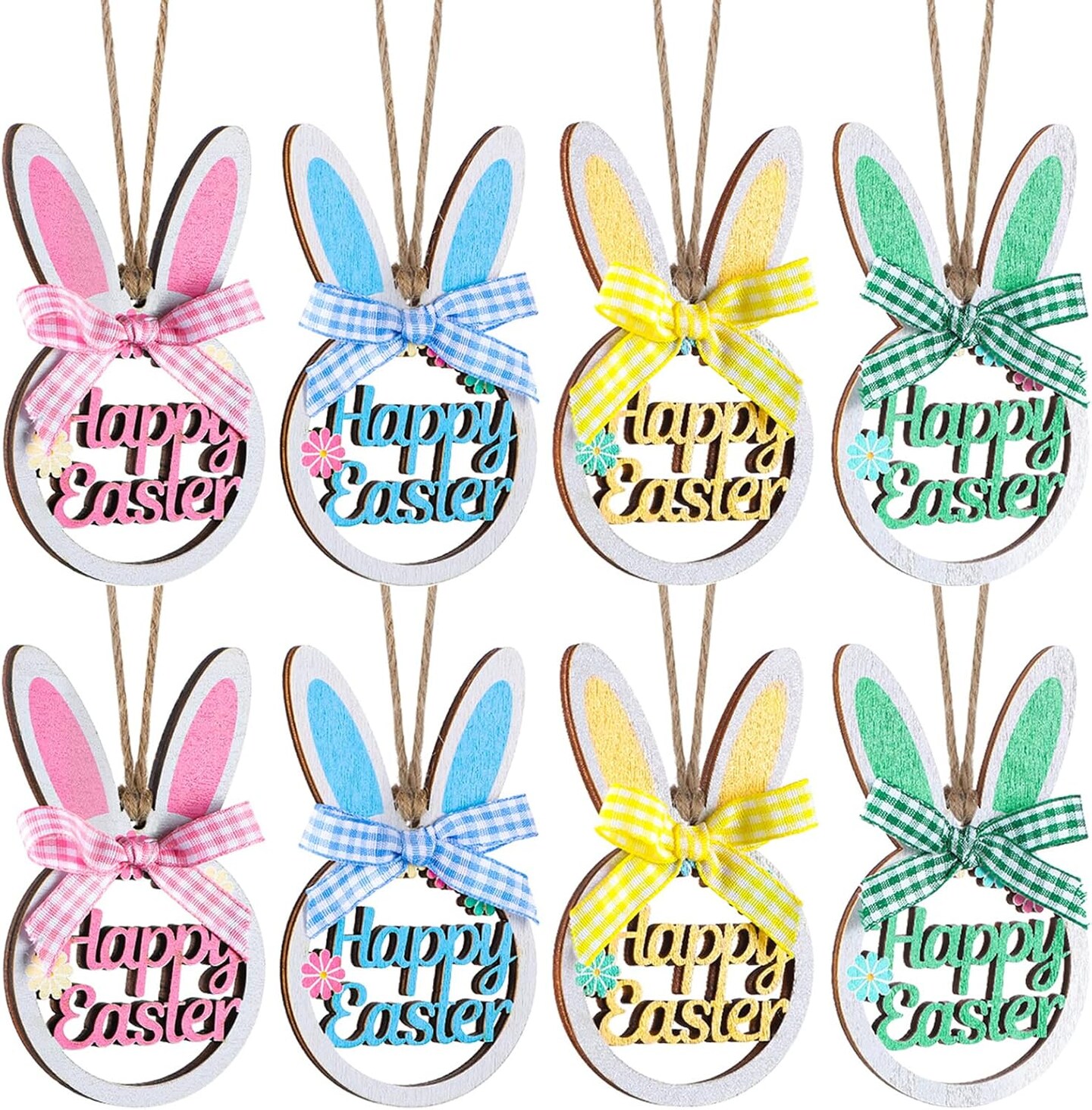 8-Piece Wooden Easter Bunny Ornaments – Hollow Hanging Rabbits with Plaid Bows for Spring Home & Garden Decor
