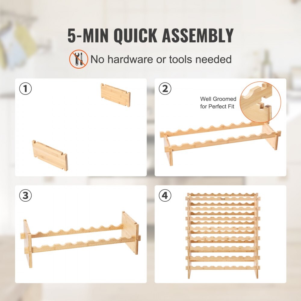 8-Tier Modular Wicker Wine Rack, 72-Bottle Wobble-Free Storage