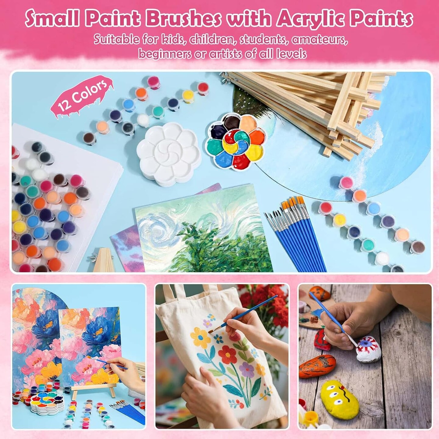 8x10 Inch Canvas & Easel Set – 12-Piece Bulk Art Kit with Mini Acrylic Paints, Brushes, Easel Stand, and Paint Trays – Sip & Paint Kit for Adults, Kids, Couples, Date Night, and Art Party Activities