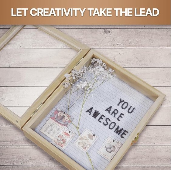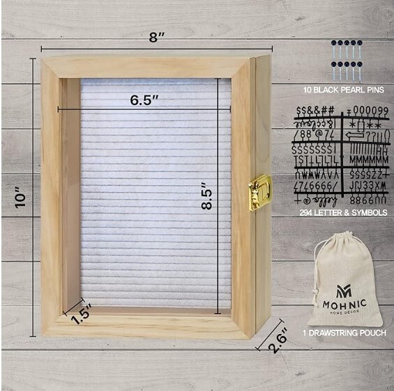 8x10 inch Shadow Box Display Case with Felt Letter Board - Picture Frame, Memory Box for Photos, Artworks, Medals, and More (Natural Wood)