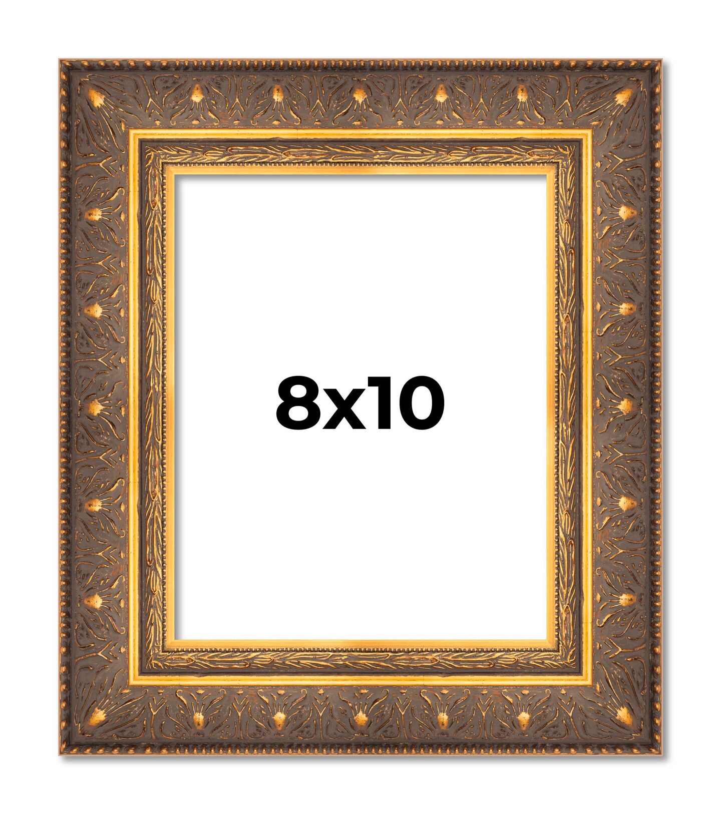 8x10 Museum Gold Picture Frame - UV Acrylic, Foam Board Backing, Hanging Hardware