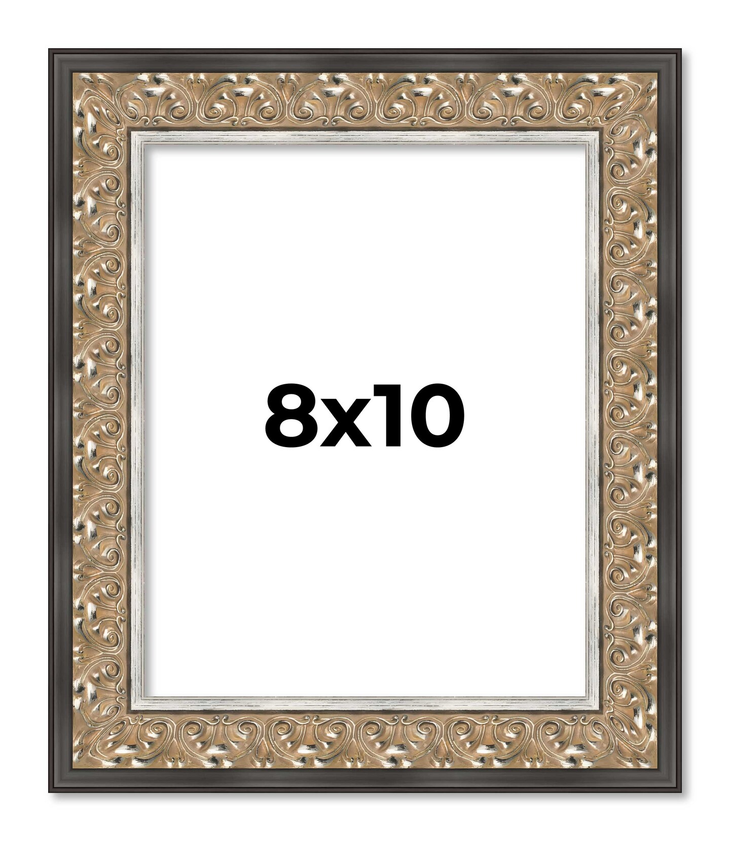 8x10 Ornate Silver Picture Frame - UV Acrylic, Foam Board Backing, Hanging Hardware