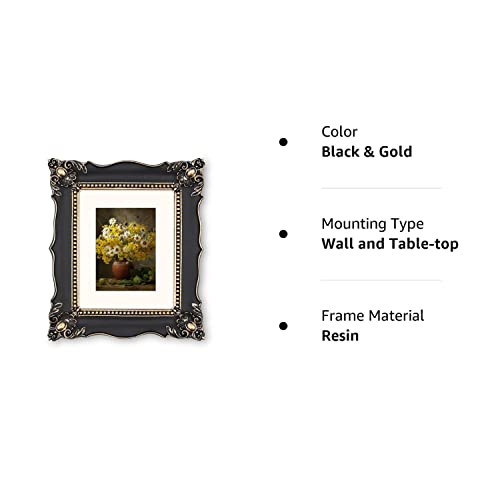 8x10 Picture Frame Baroque Picture Frames 8 by 10 Vintage Frames for Picture Artwork in Black & Gold