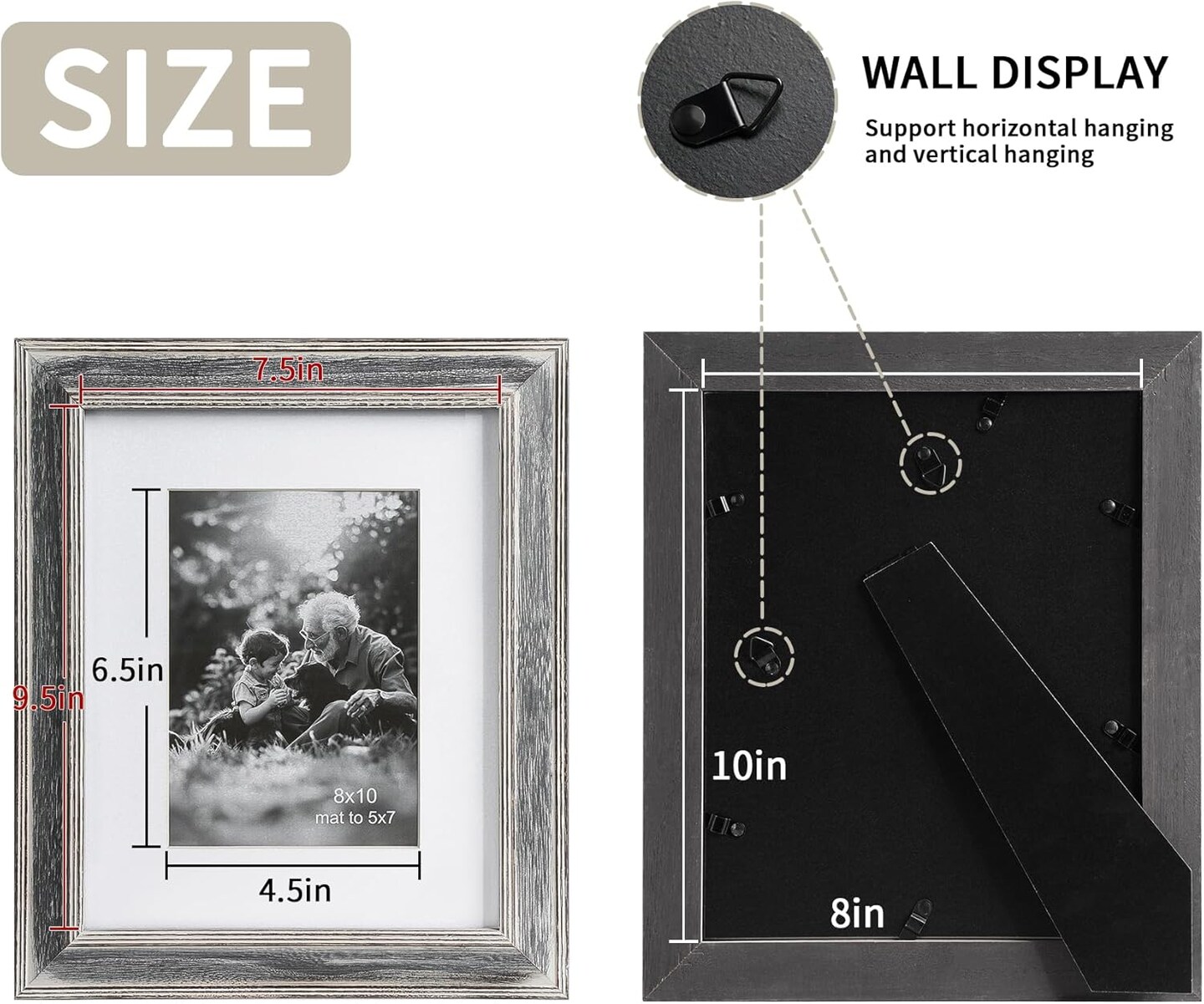 8x10 Rustic White Wood Picture Frame with Mat for 5x7, Weathered Solid Wood Frame with Real Glass