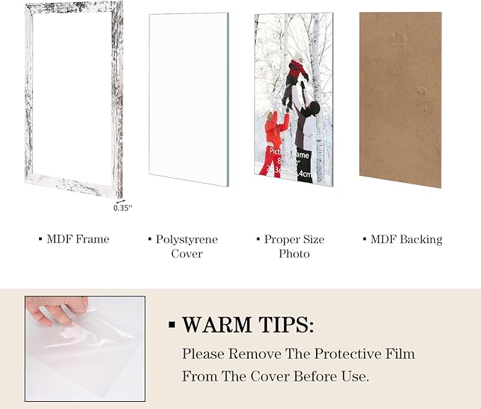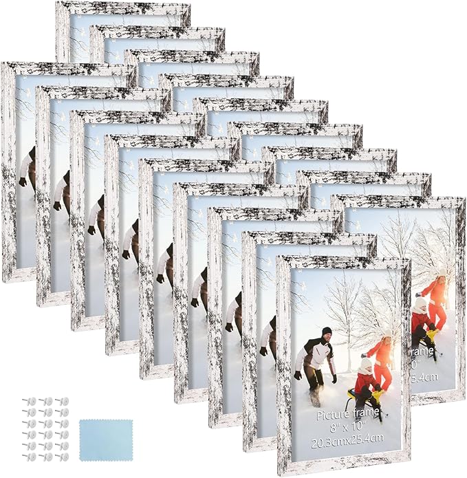 8x10 Wood Grain Picture Frame Bulk, Set of 18, Distressed White Wood Color Rustic Picture Frame for 8x10 Family, Wedding, or Team Photos, Tabletop or Wall