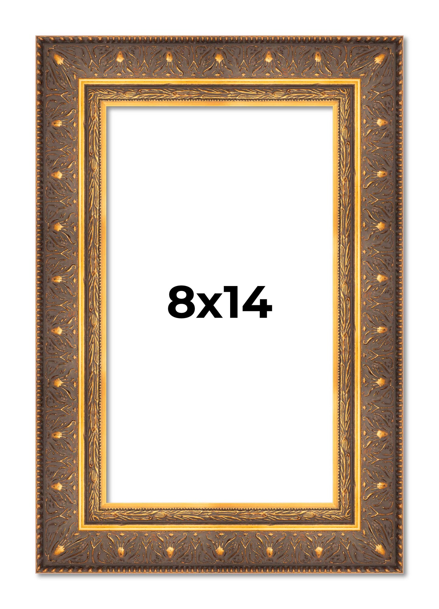 8x14 Museum Gold Picture Frame - UV Acrylic, Foam Board Backing, Hanging Hardware