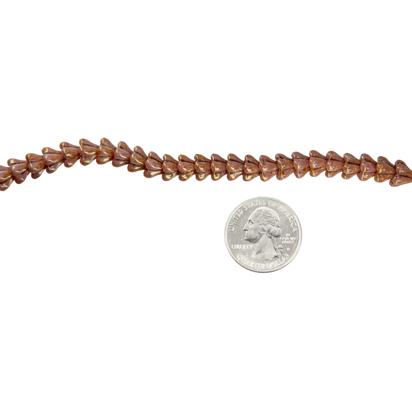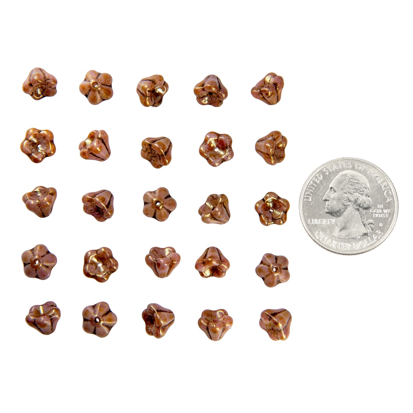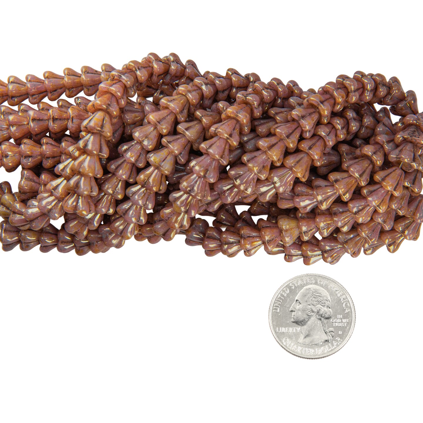 8x6mm Luster Opaque Rose Gold Topaz Glass Bell Flower Beads One Strand apx 25 beads GB-FB34