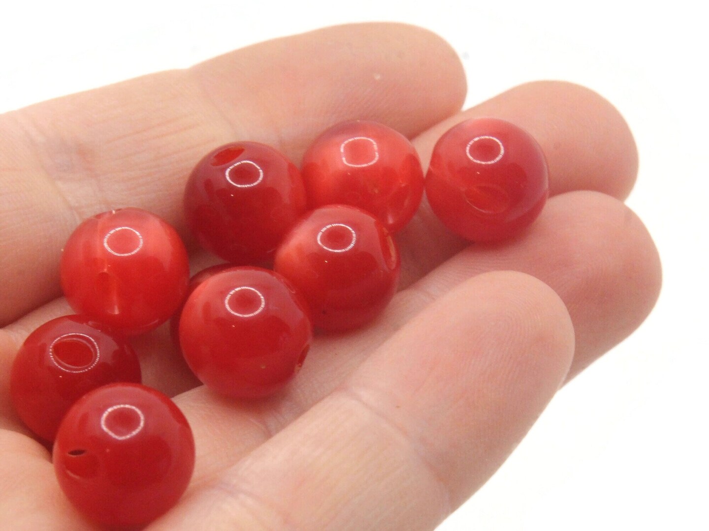 9 11mm 7/16 Inch Red Vintage Lucite Round Ball Buttons