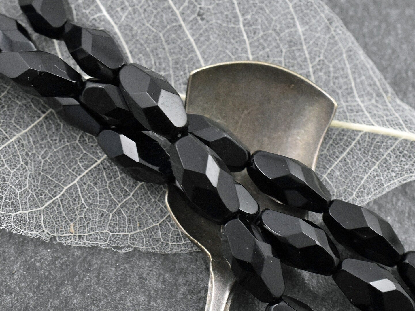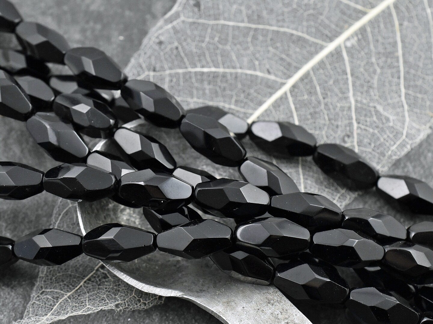 *9* 15x8mm Opaque Jet Black Gemcut Fire Polished Oval Beads