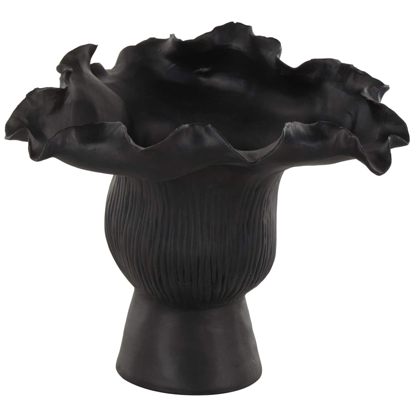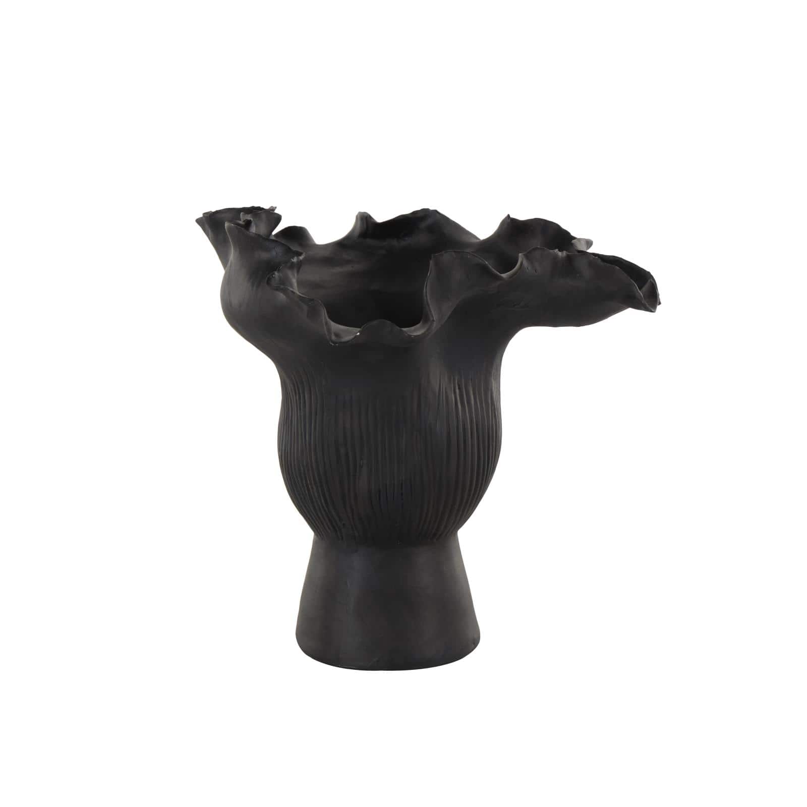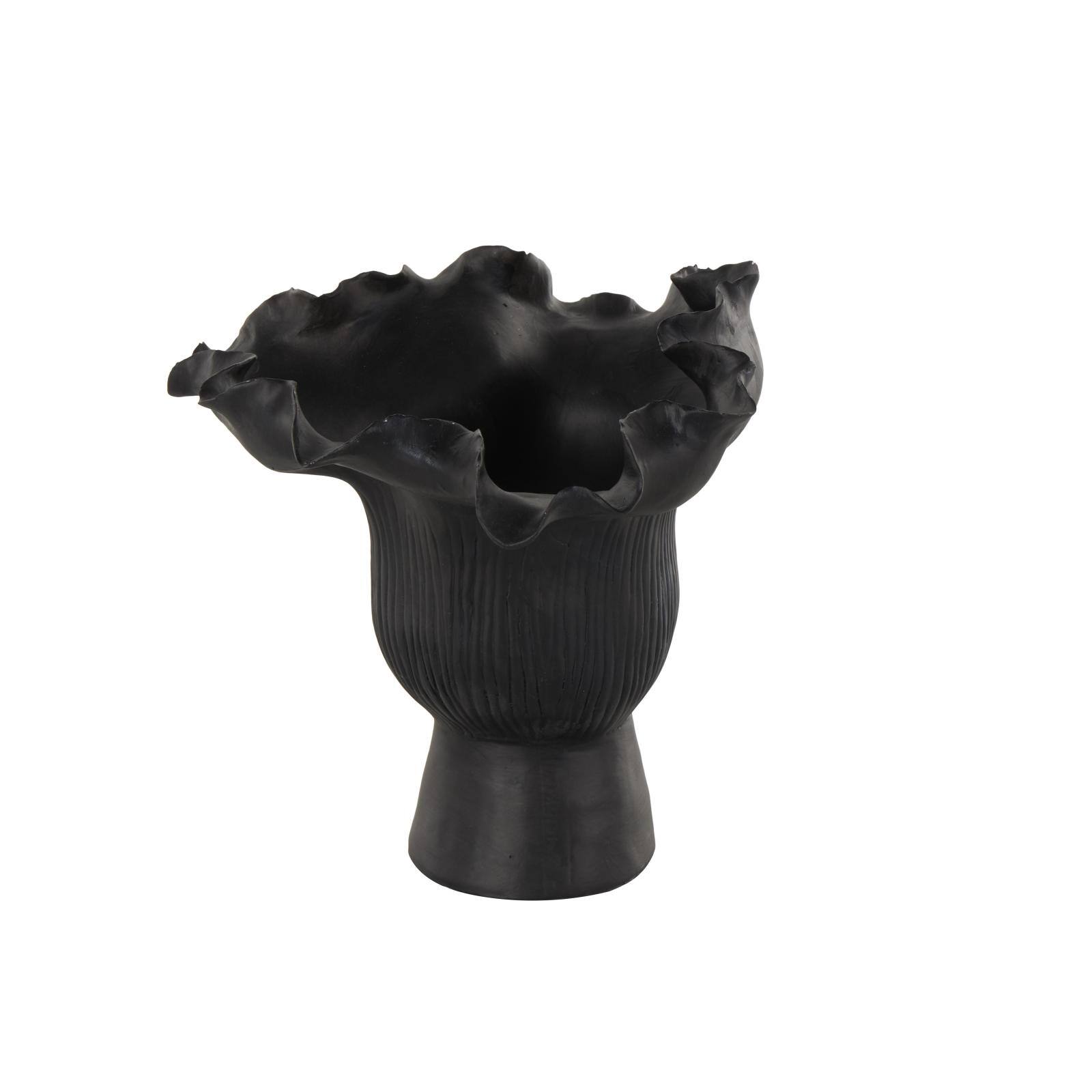 9" Black Ceramic Abstract Floral Inspired Vase with Linear Grooves