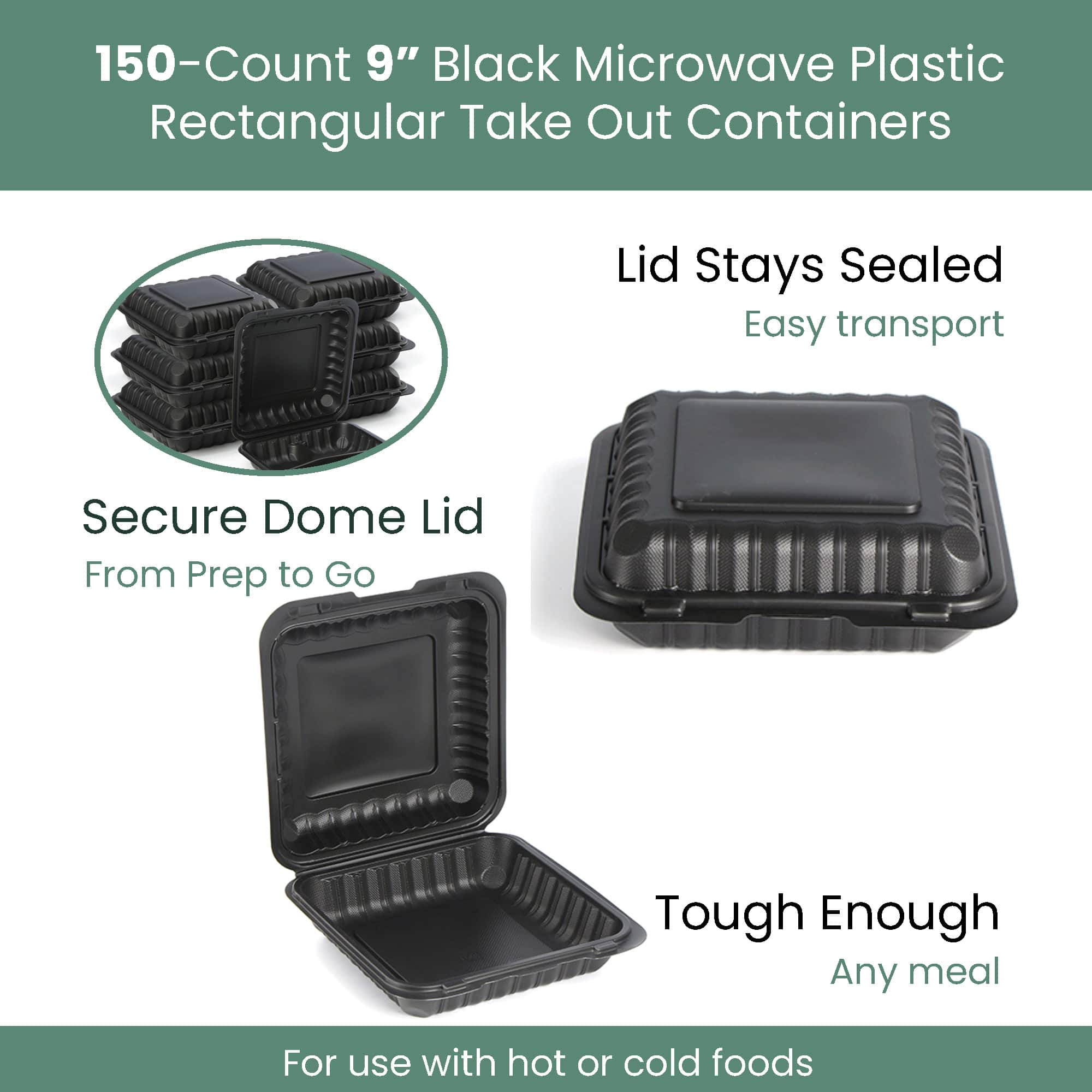9" Black Single-Compartment Clamshell Take Out Containers, 150ct.
