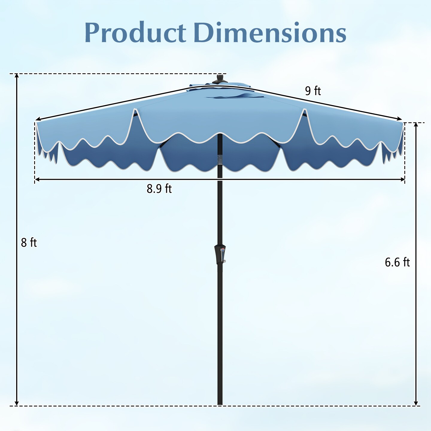 9 Feet Patio Umbrella with Crank Handle and Push Button Tilt-Navy