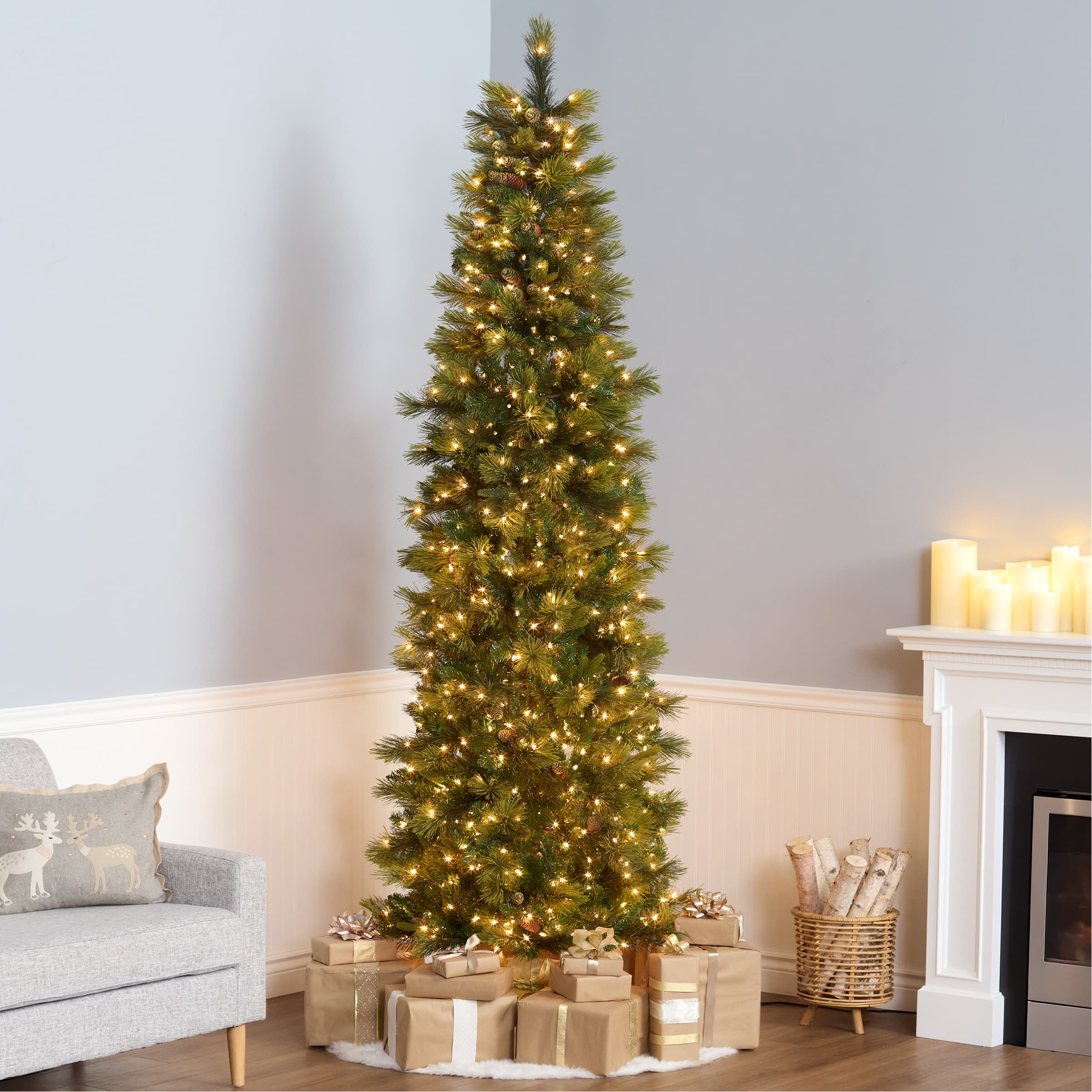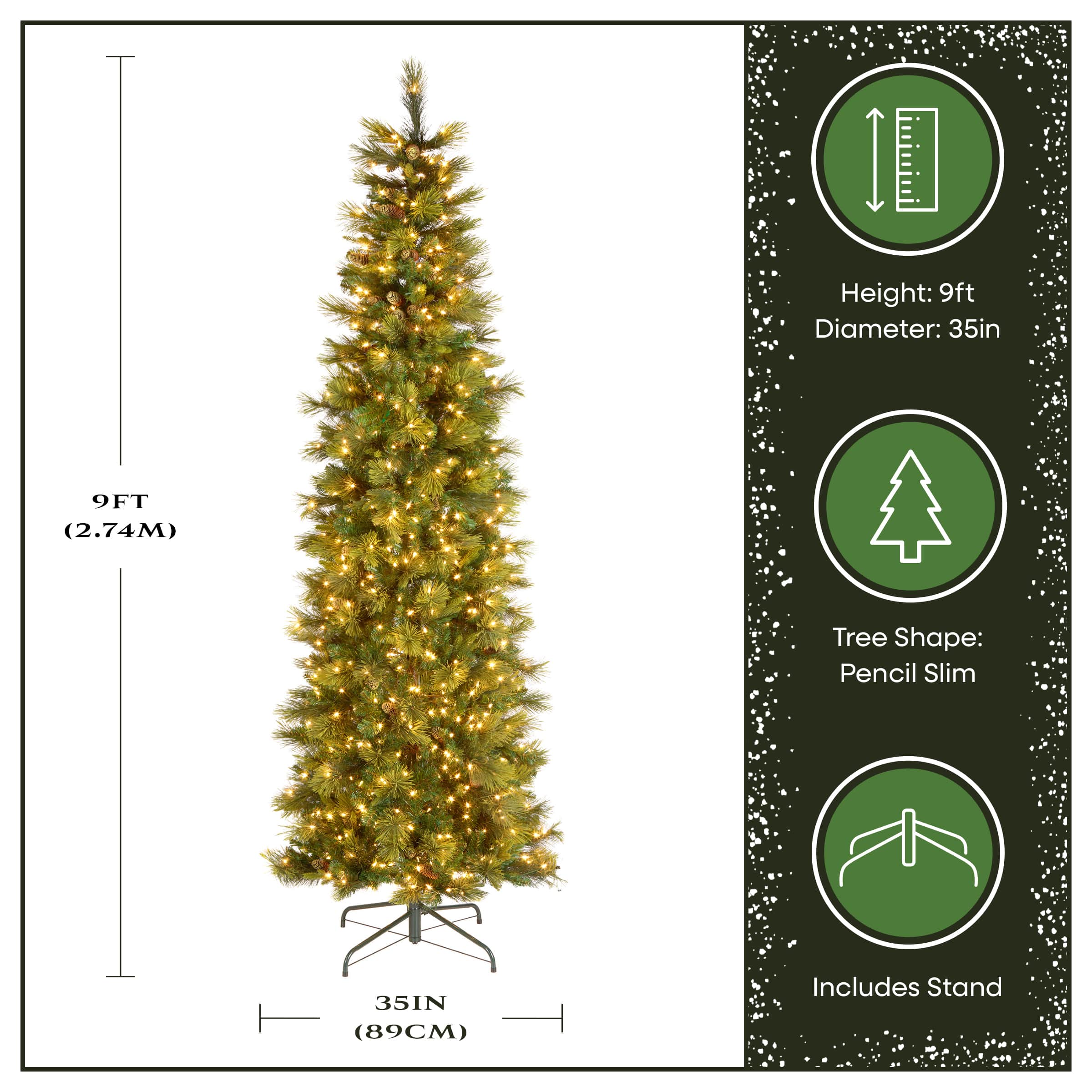 9 ft. Pre-Lit Carolina Pine Slim Artificial Christmas Tree with Flocked Pine Cones, Clear Lights