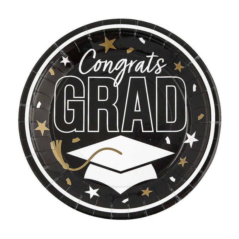 9" Graduation Party Pink Congrats Grad Round Paper Dinner Plates 25 Count