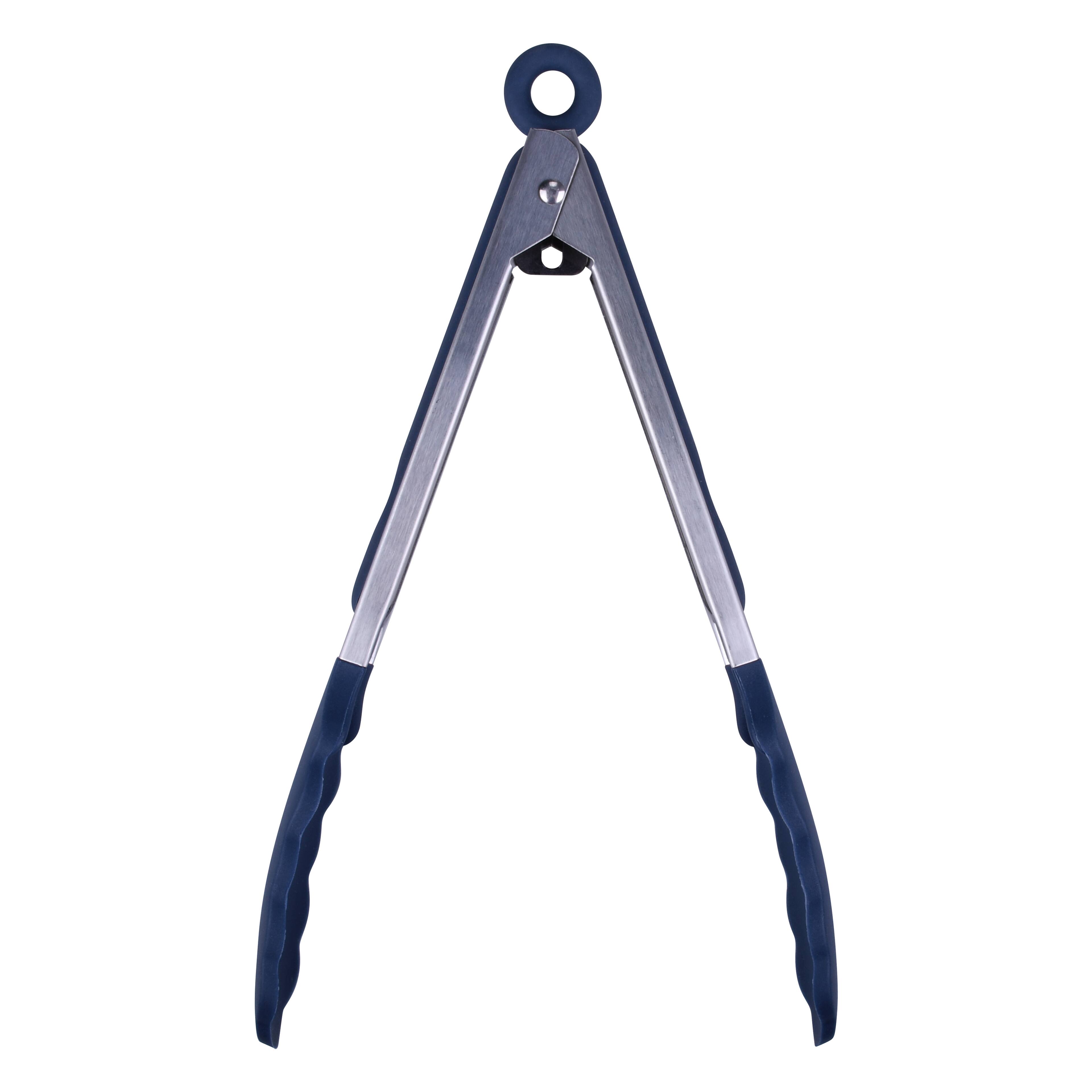 9" Navy Stainless Steel Silicone Tong by Makery™