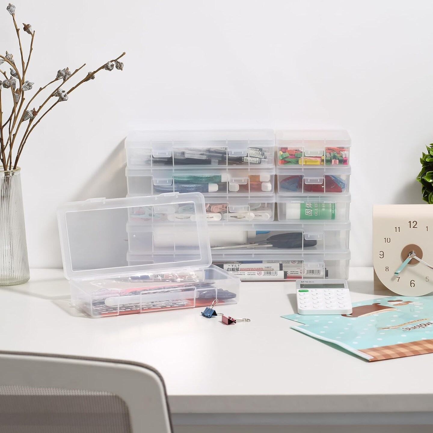 9 Pack Medium Clear Plastic Storage Boxes with Lids, Craft Jewelry Life Item Organizer for Puzzles, Pens, Rings, Needle and Thread, Nail Polish, Remote Controls