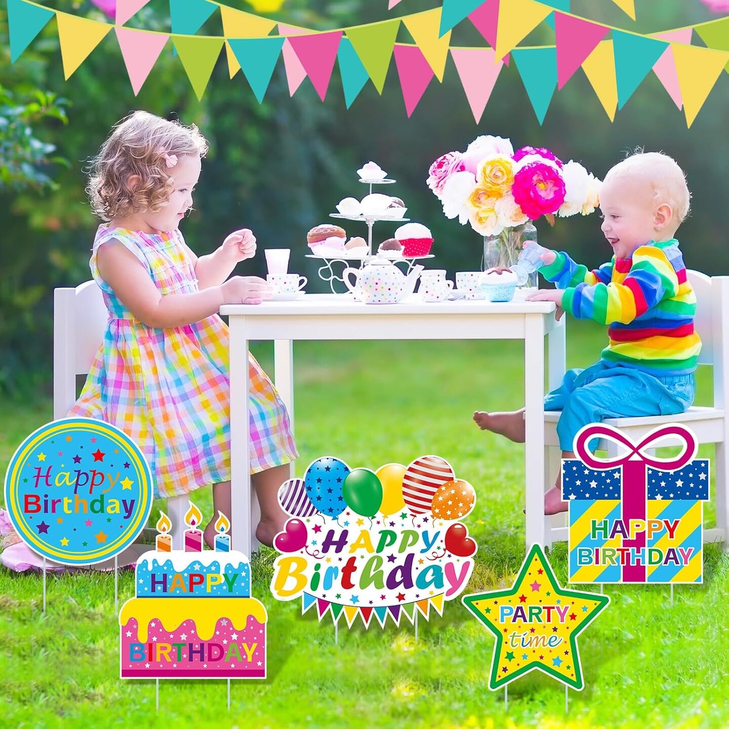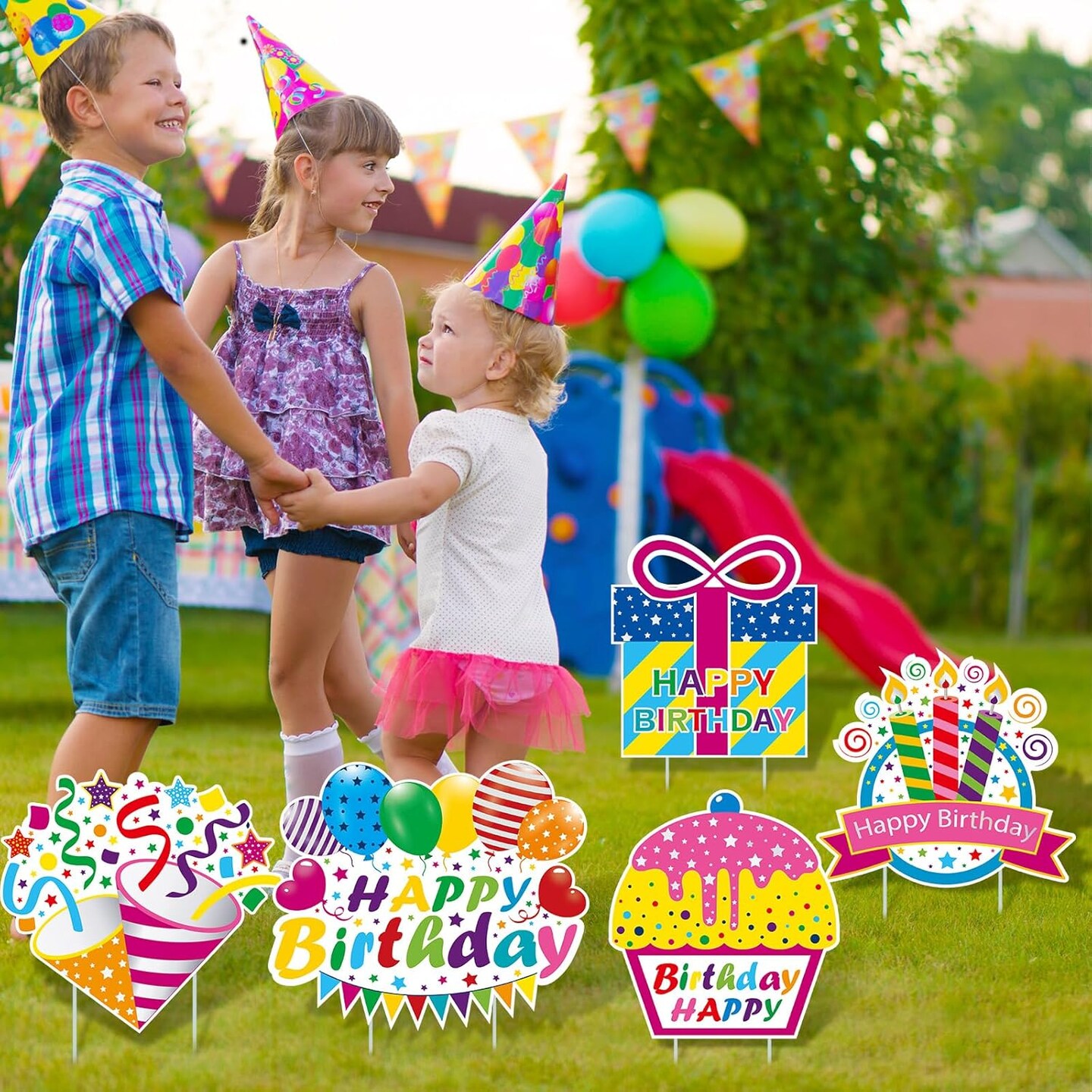 9 Pcs Happy Birthday Yard Signs with Stakes Birthday Lawn Signs Waterproof Outdoor Lawn Sign Balloons Cake Gift Box Outdoor Decor for Party Supplies Outdoor Garden(Colorful)