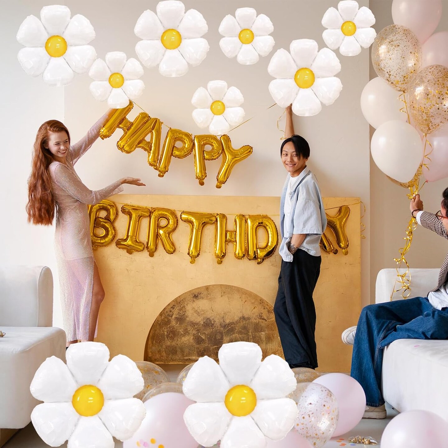 9 Pieces Large Daisy Flower Balloons Set - 3 Sizes White Flower Shaped Aluminum Foil Balloon for Daisy Birthday Decorations, Baby Shower, Wedding, Groovy Boho Daisy Party Supplies