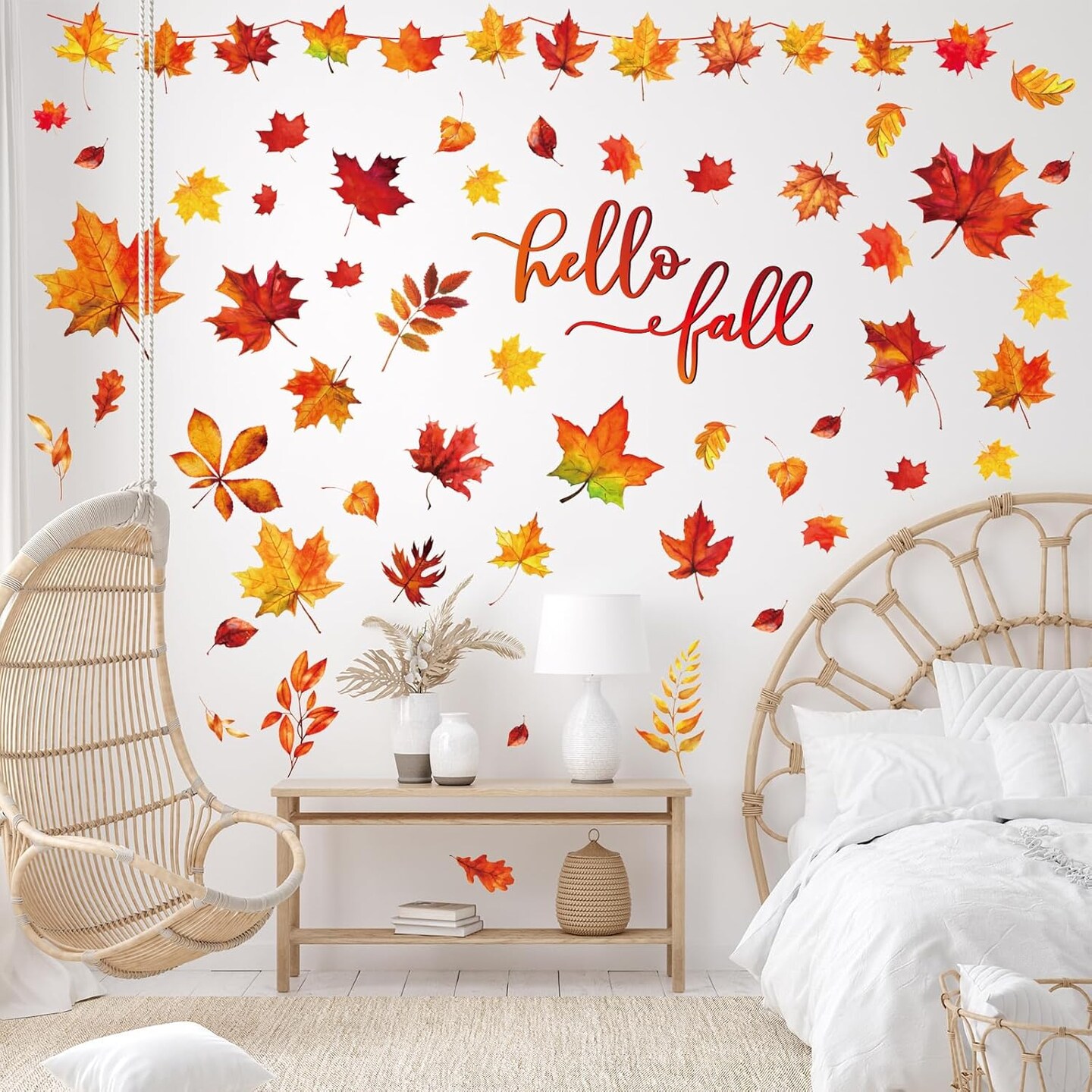 9 Sheets- Fall Wall Decor Stickers Hello Fall Maple Leaves,8.3 x 10.6 Inch