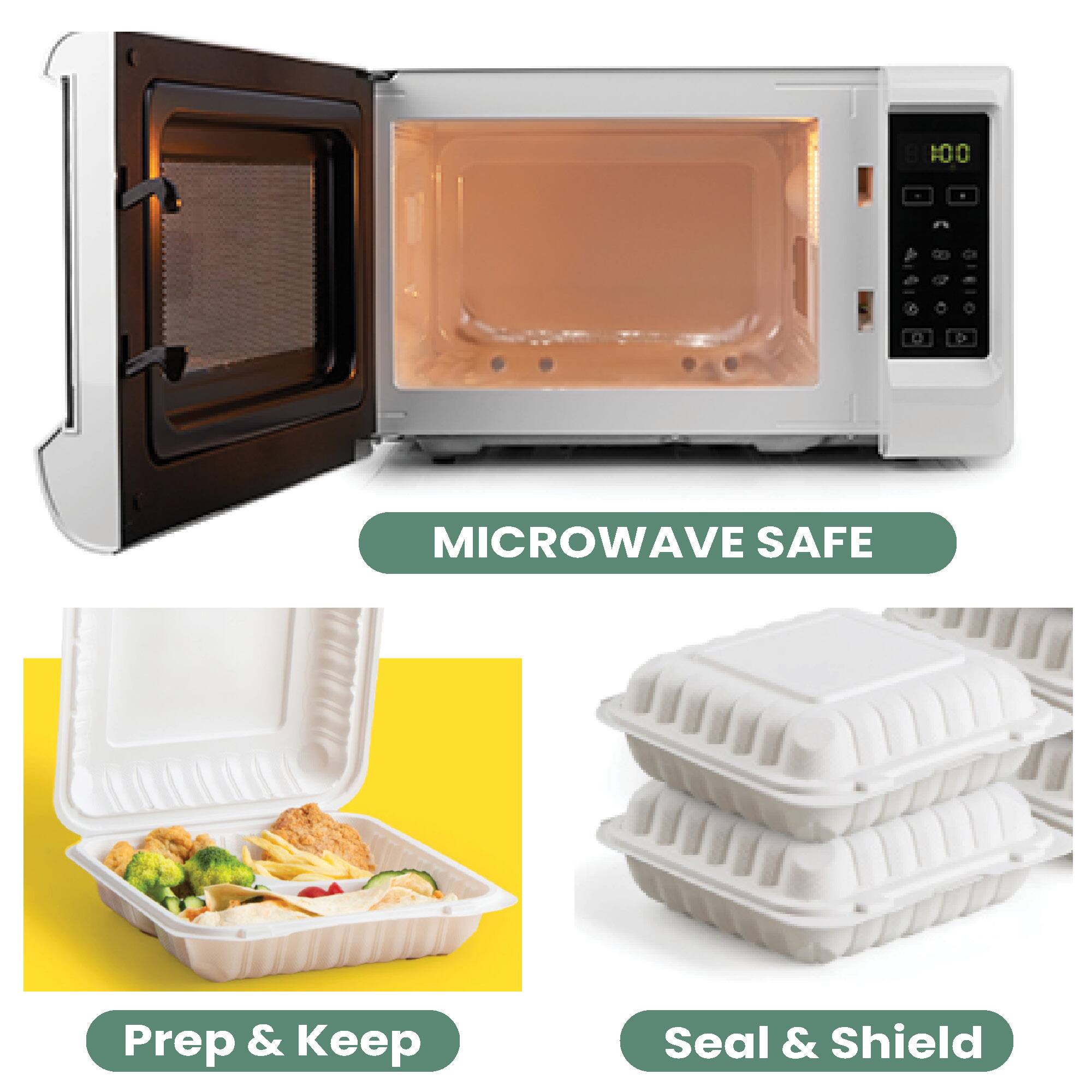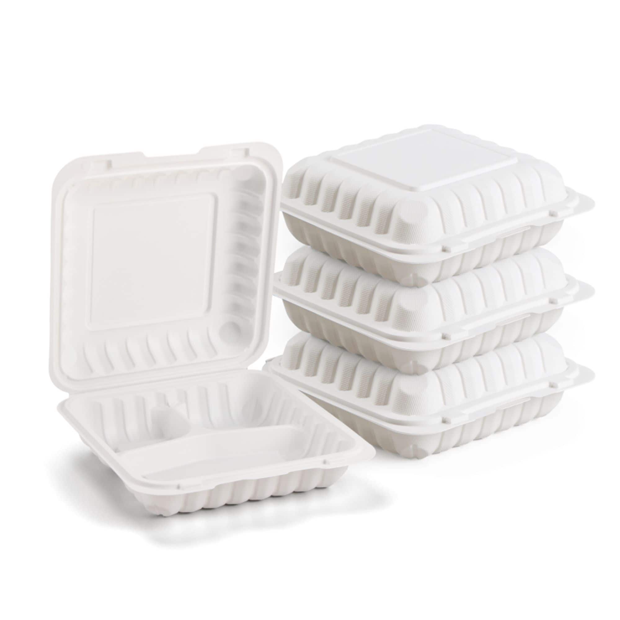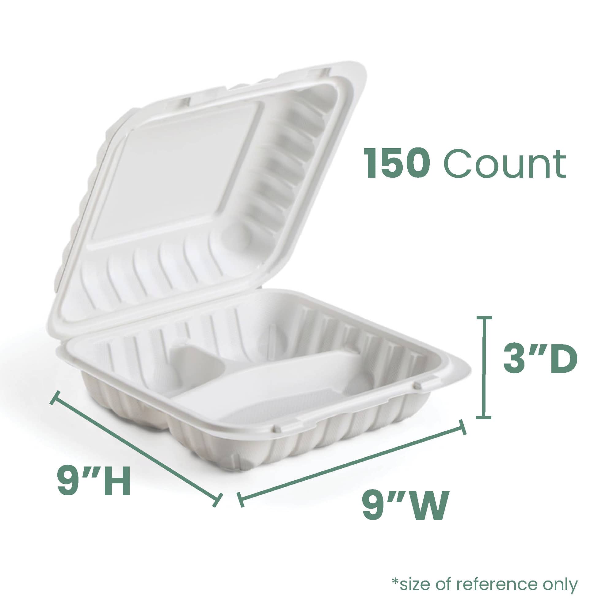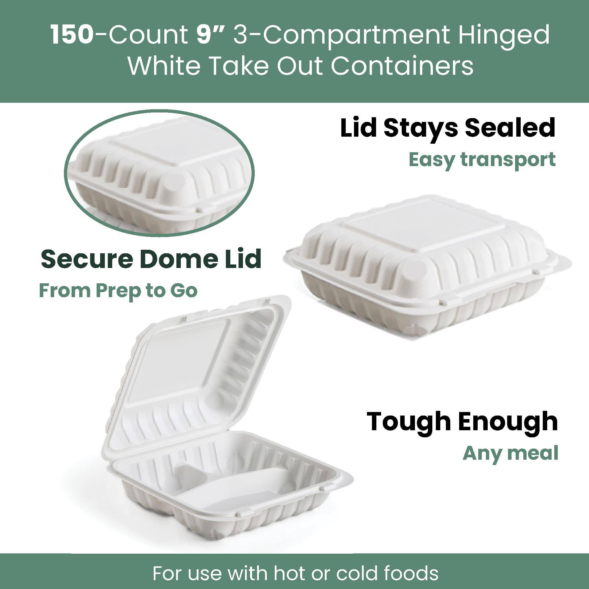 9" White 3-Compartment Clamshell Take Out Containers, 150ct.
