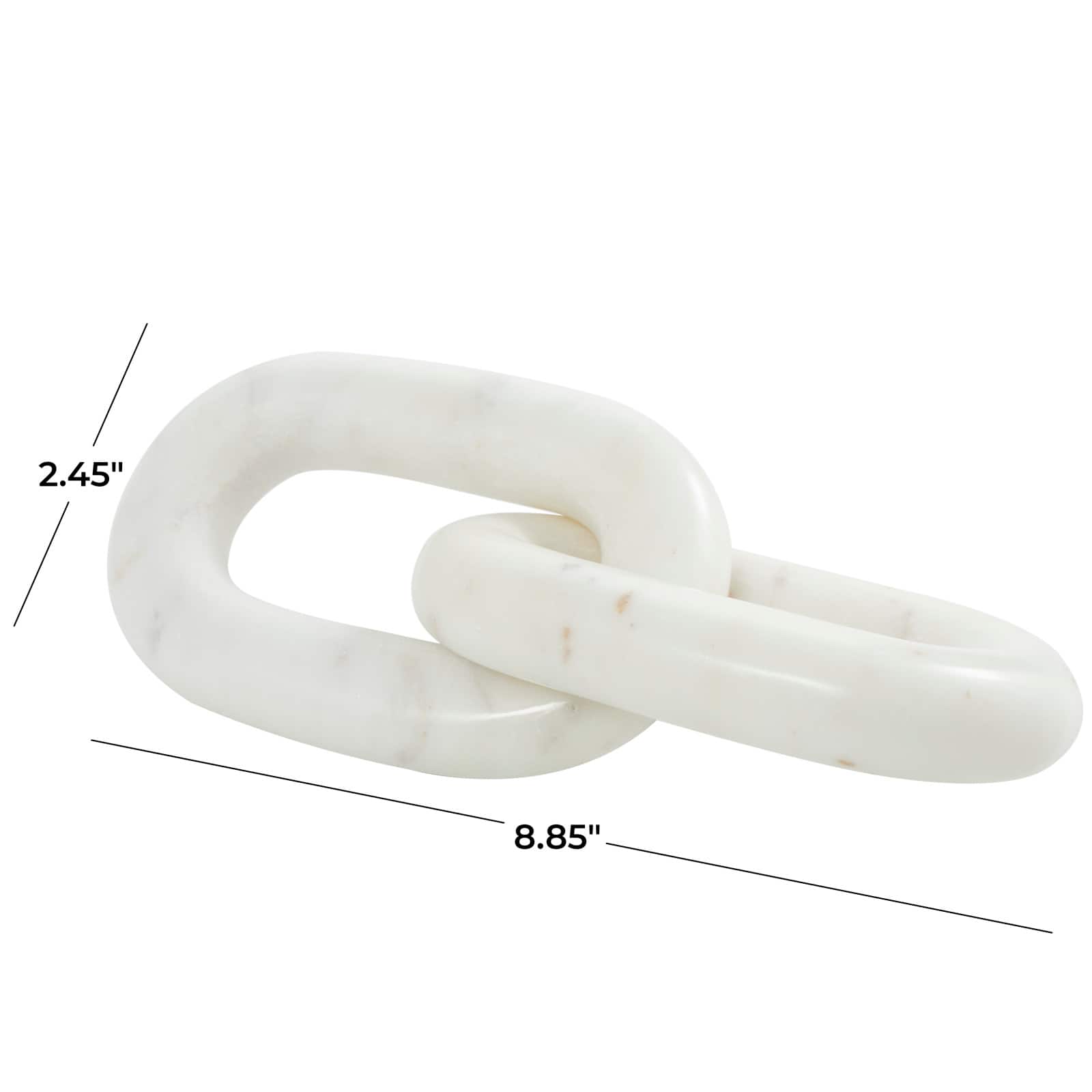 9" White Marble Geometric 2 Link Chain Sculpture Décor