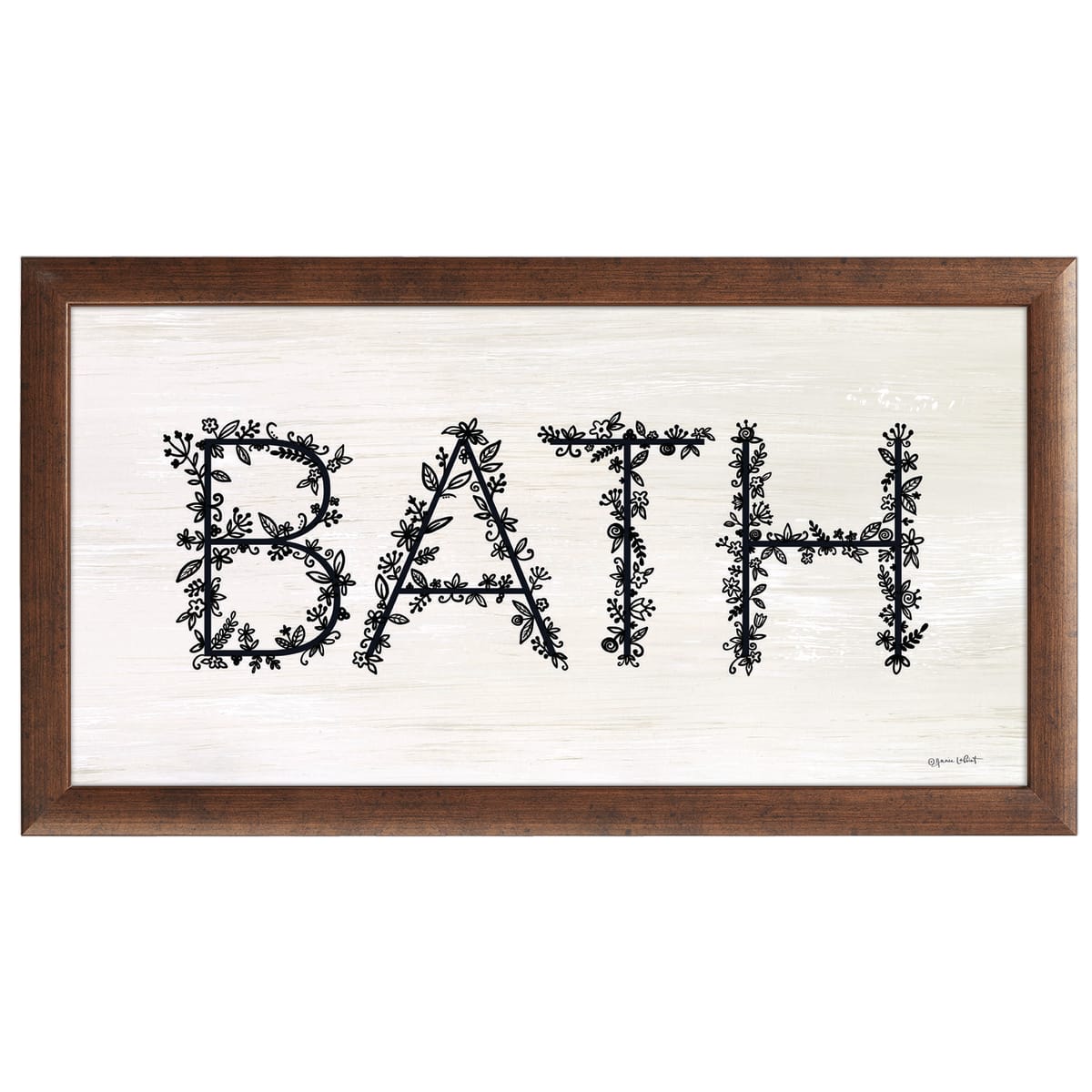 9" x 18" Bath Sign Framed Wall Art, Contemporary Home Décor for Bath and Bathroom, Glass Facing and Hanging Hardware Included