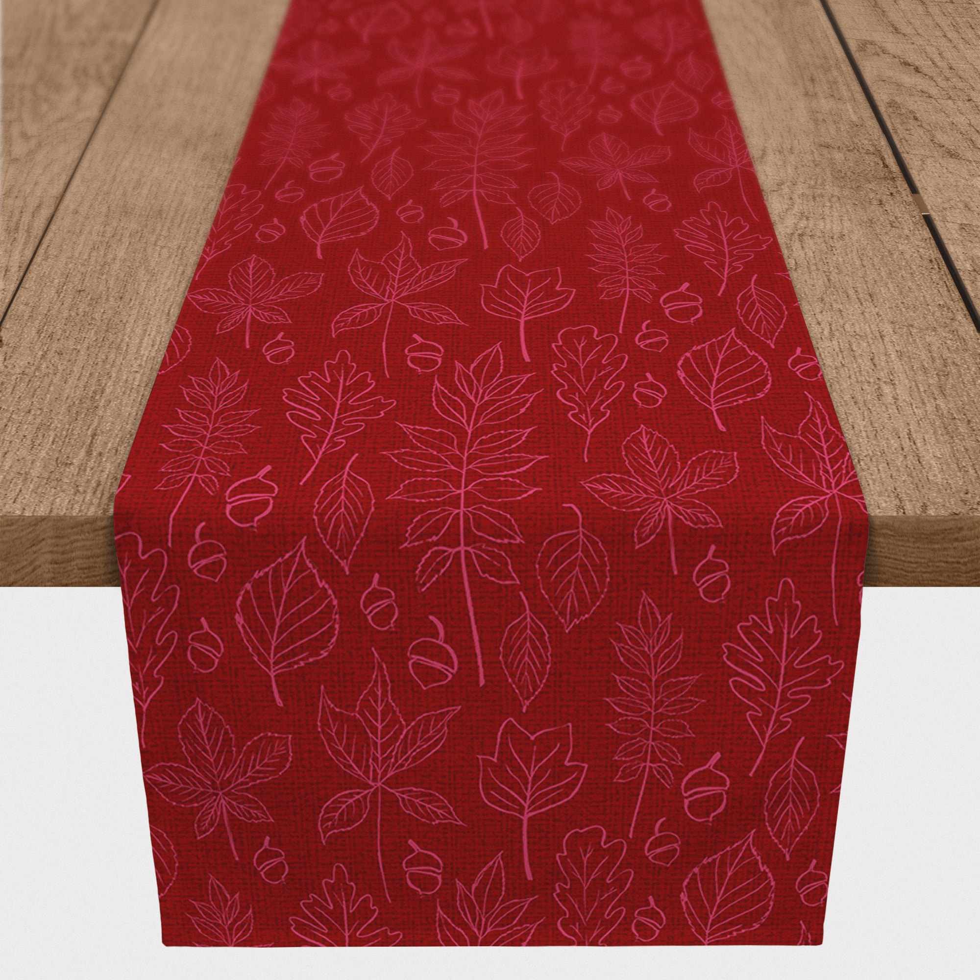 90" Autumn Pattern Leaves On Red Poly Twill Table Runner