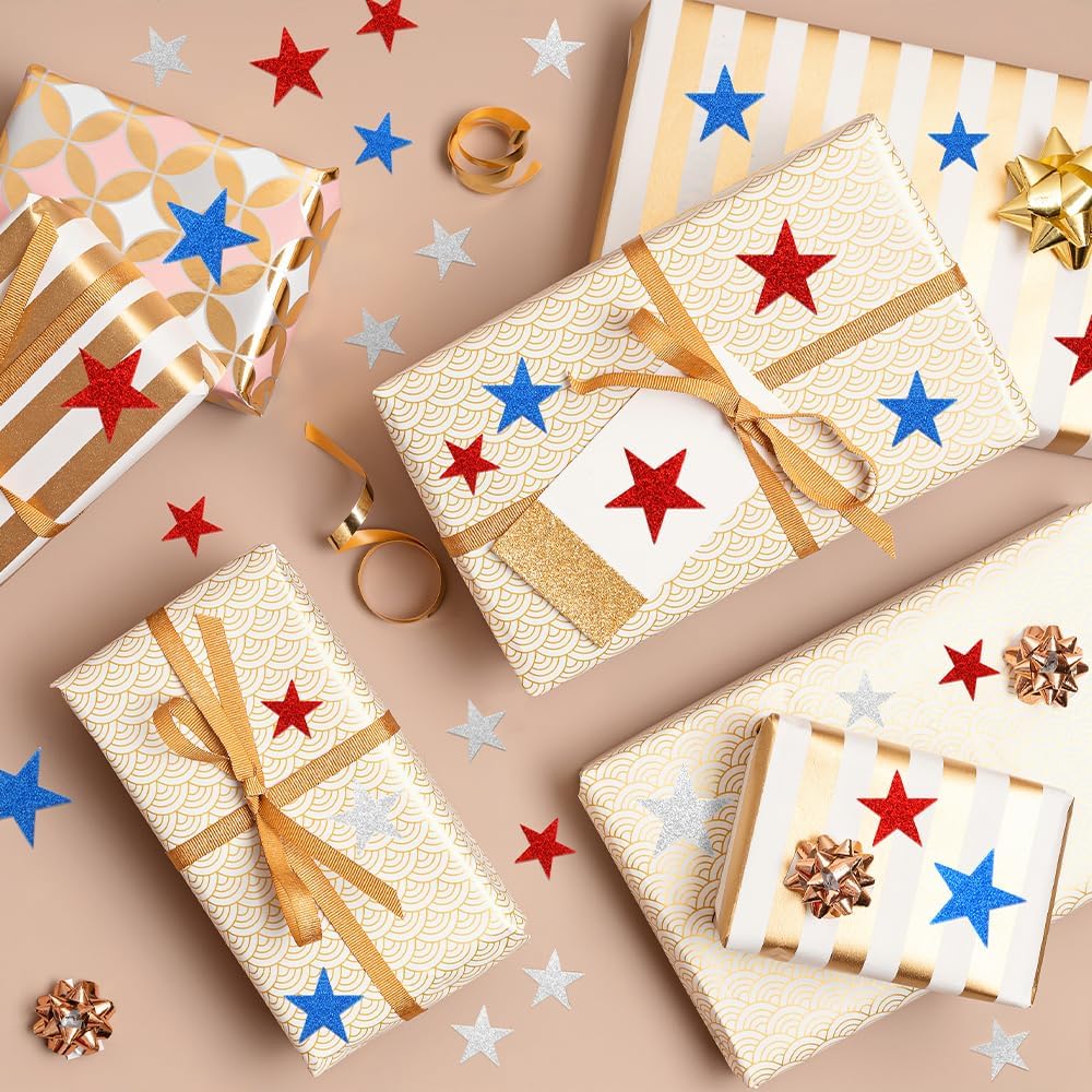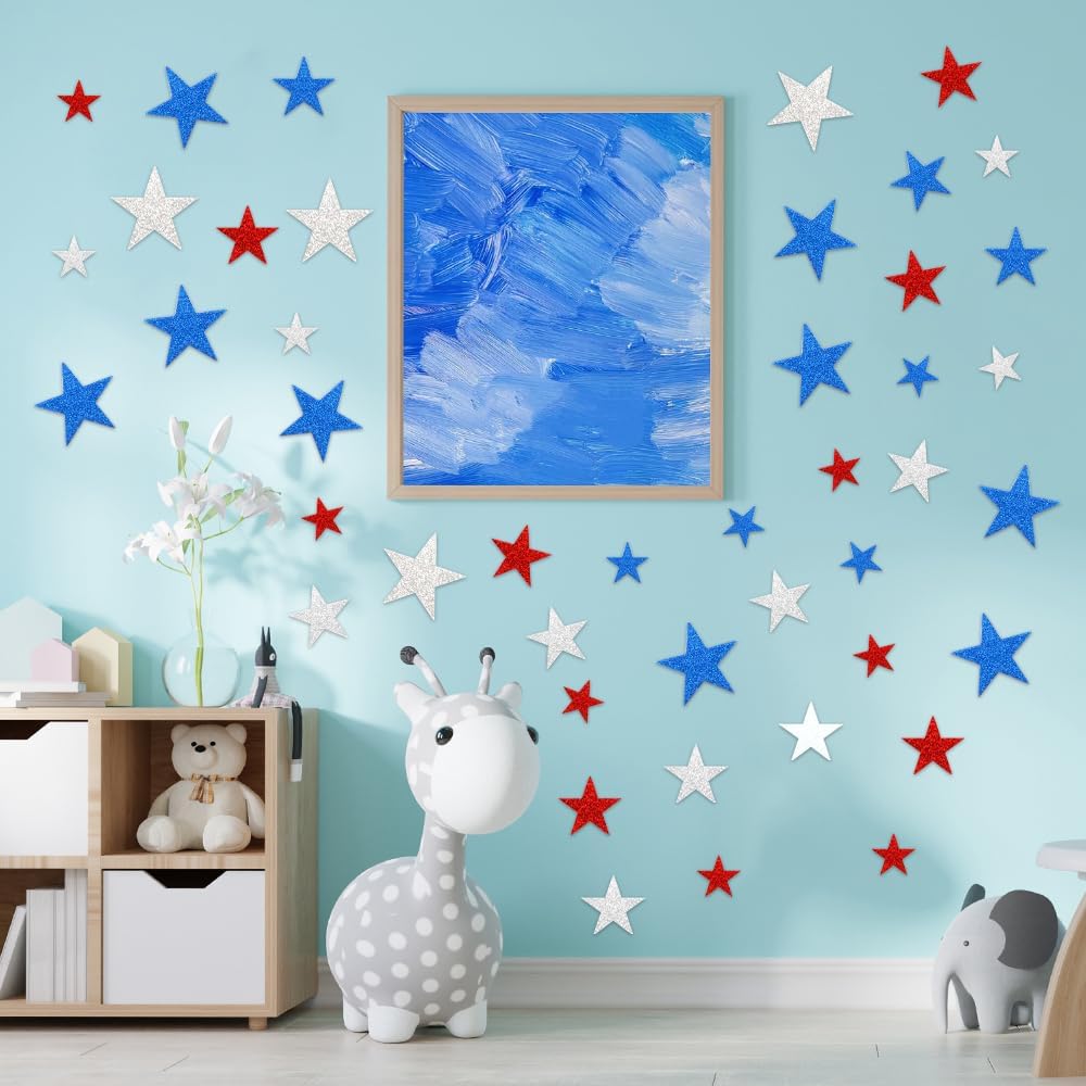90 Pcs 4th of July Foam Stickers Red White Blue Glitter Sticker