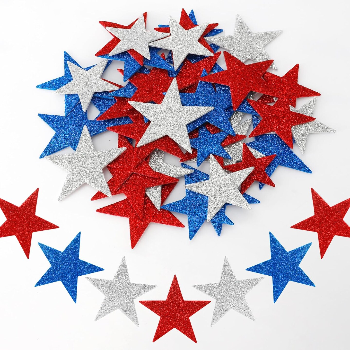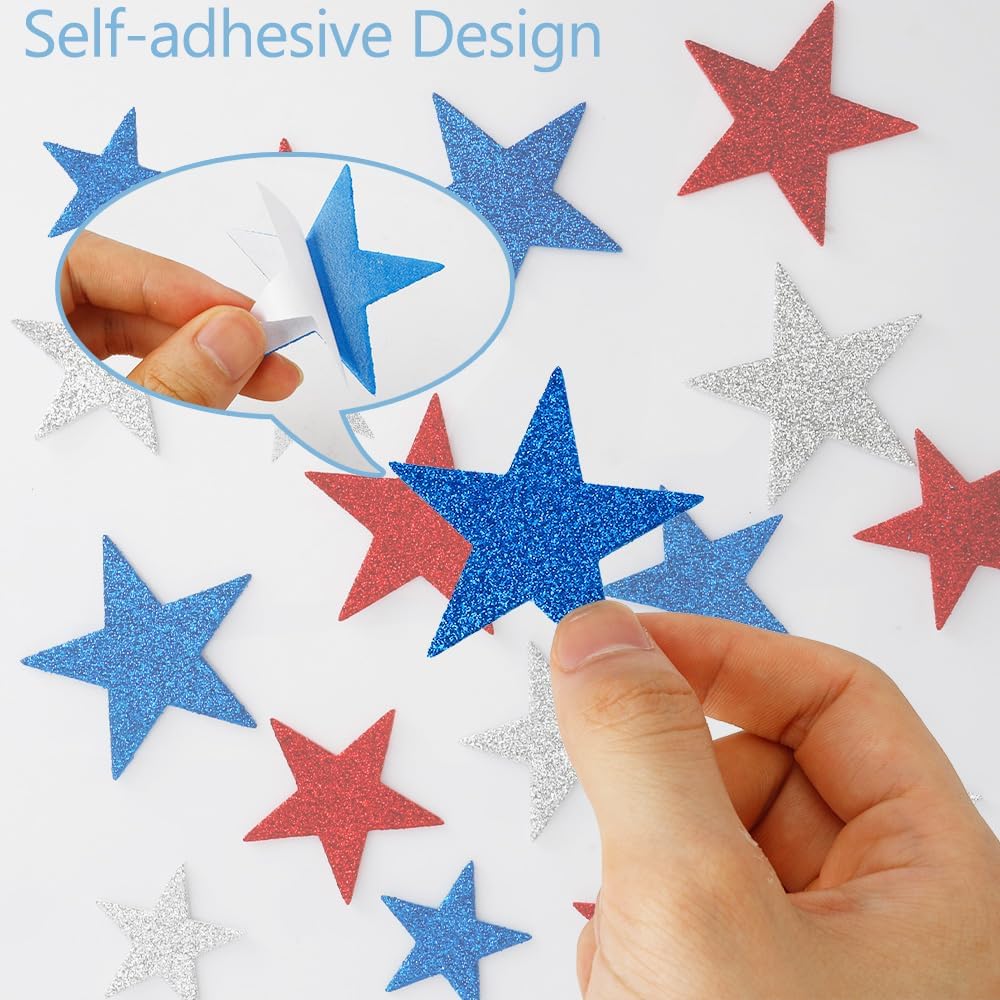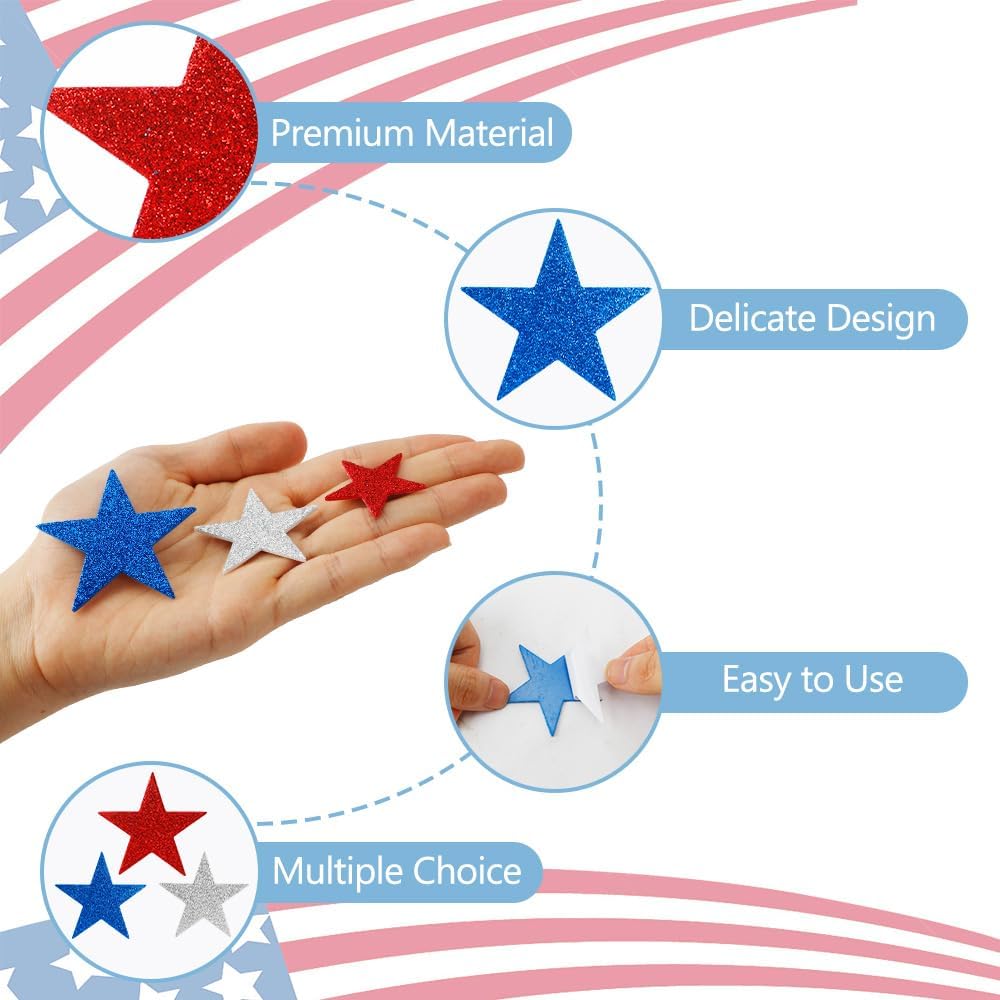 90 Pcs Glitter 4th of July Sticker Self Adhesive Small Patriotic Stars Decor