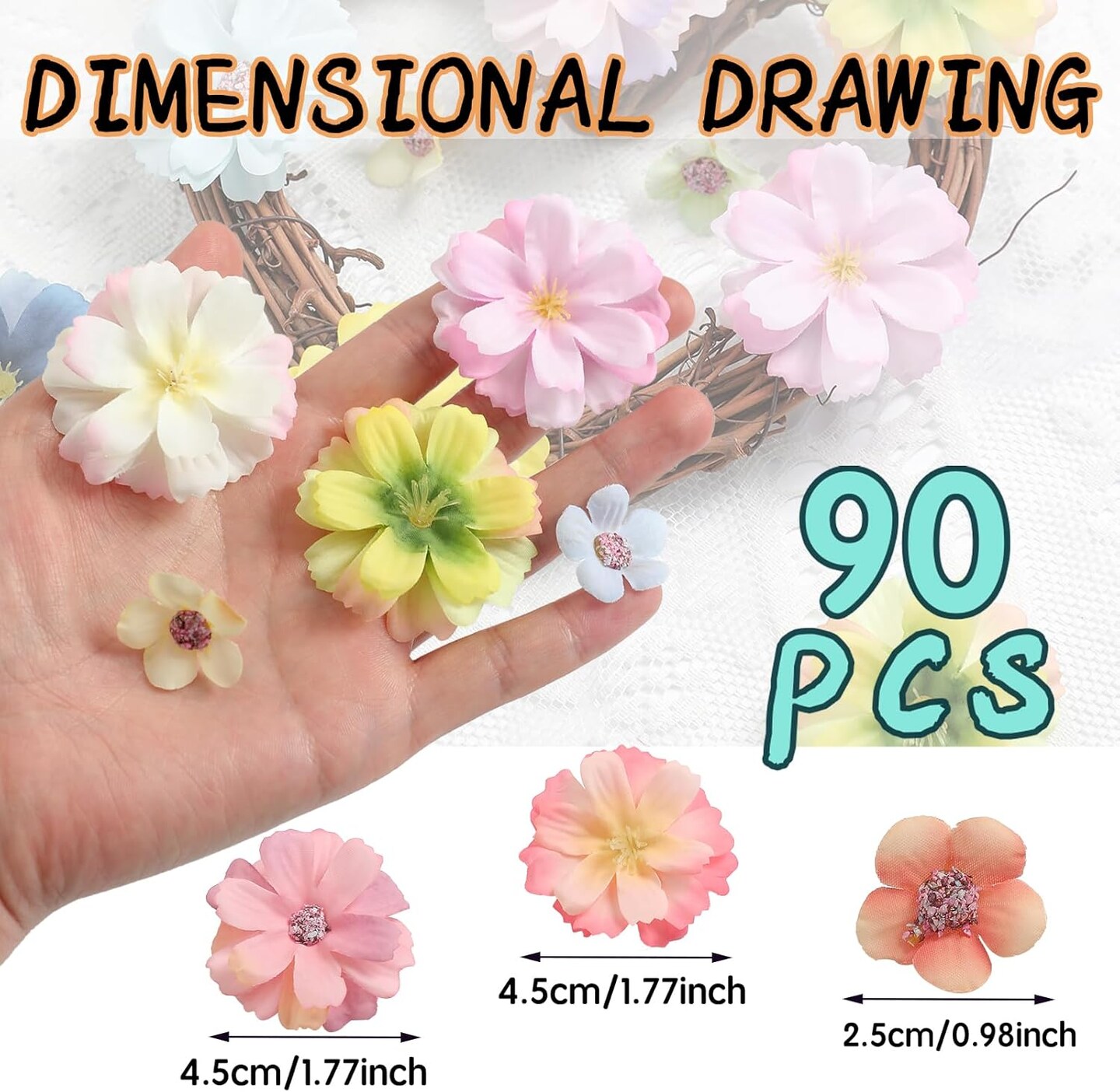 90 Pcs Mini Artificial Silk Flower Heads - Multicolor Peony, Daisy