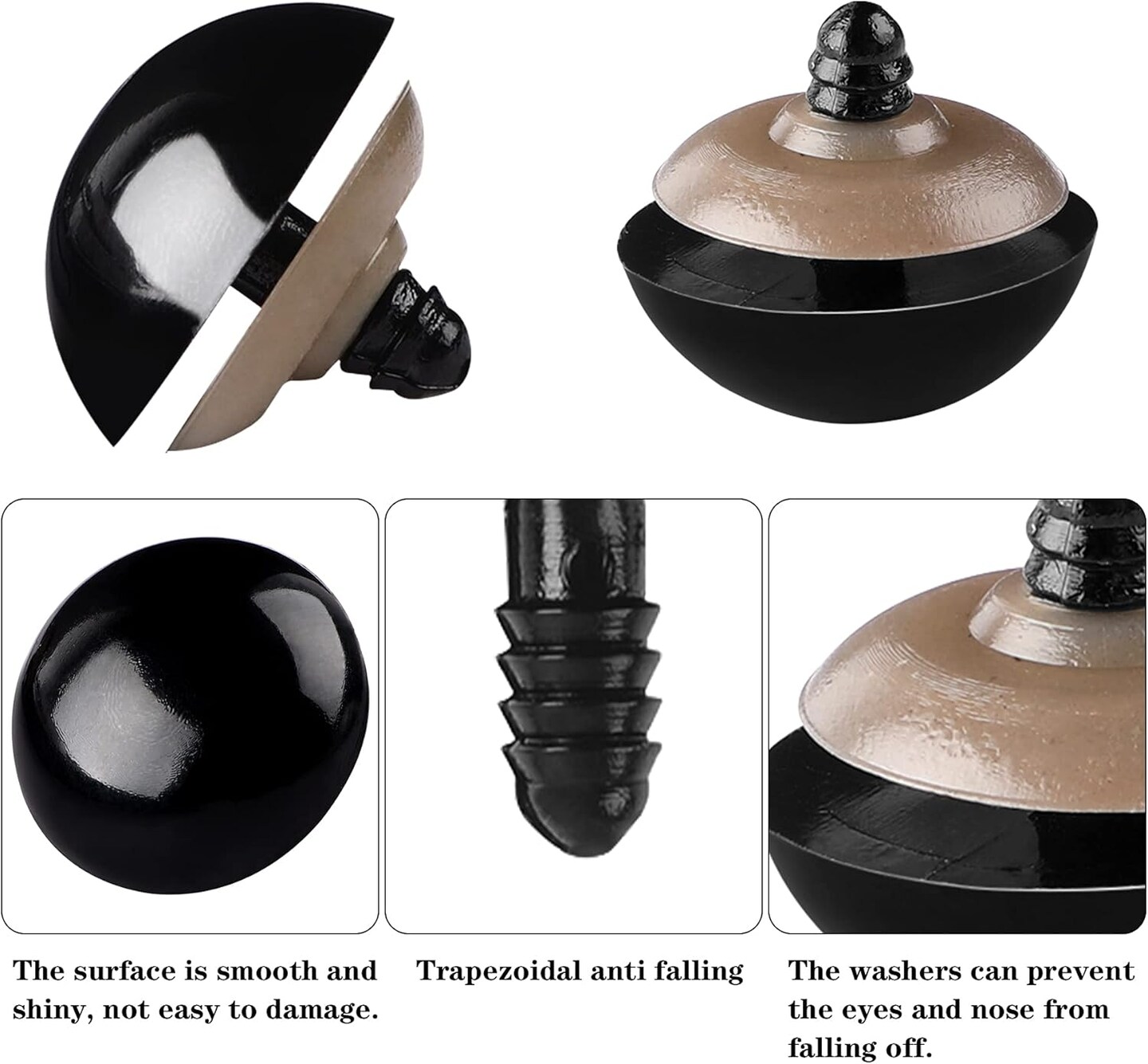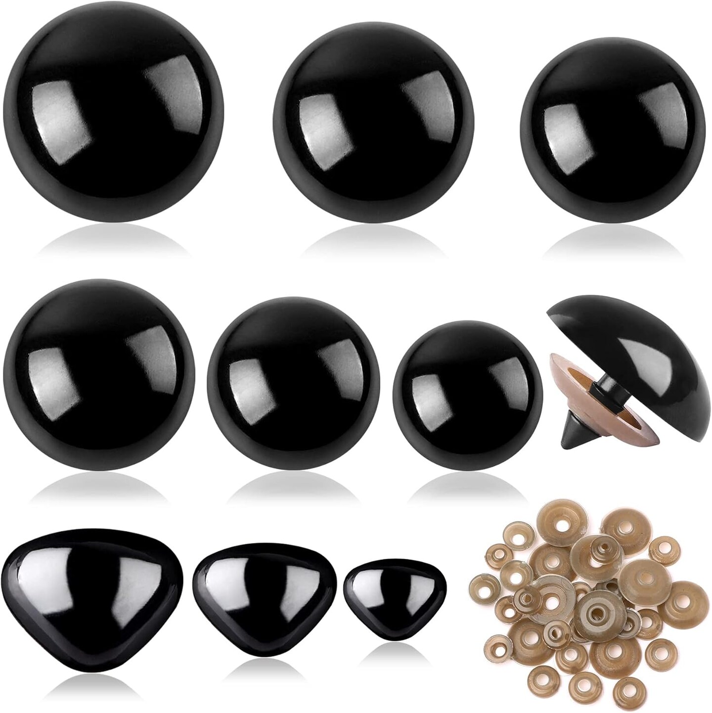 90pcs Black Safety Eyes & Noses Kit with Washers – Plastic Craft Eyes and Triangular Noses for Amigurumi, Dolls, Puppets, Be