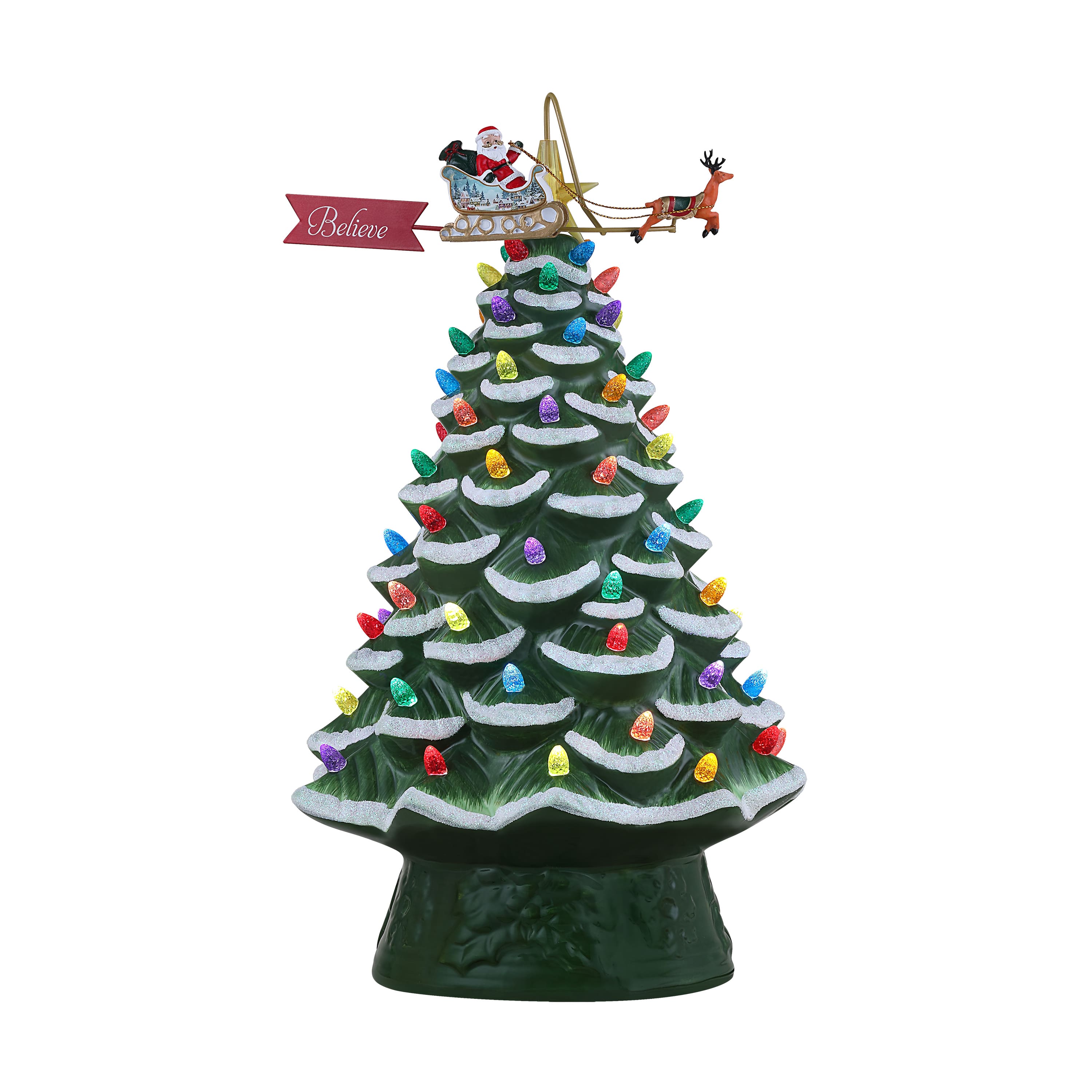 90th Anniversary Collection Green 16" Ceramic LED Tree with Animated Santa's Sleigh