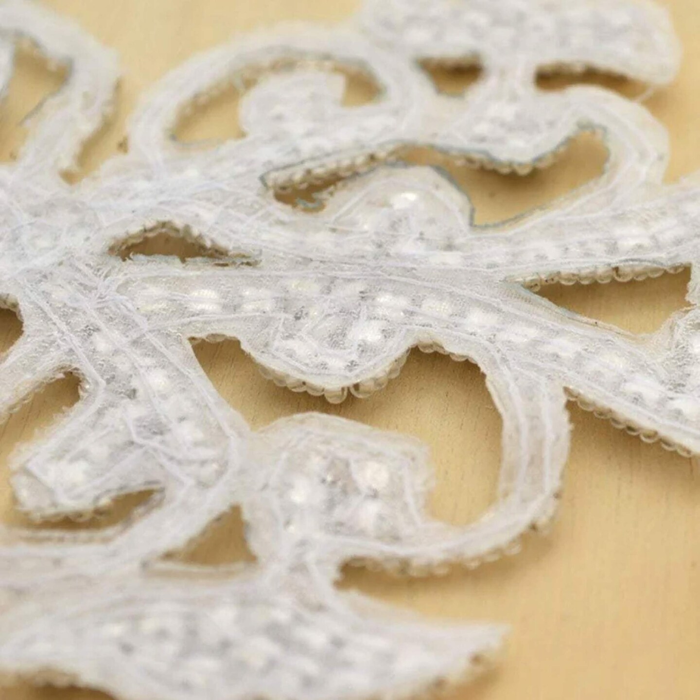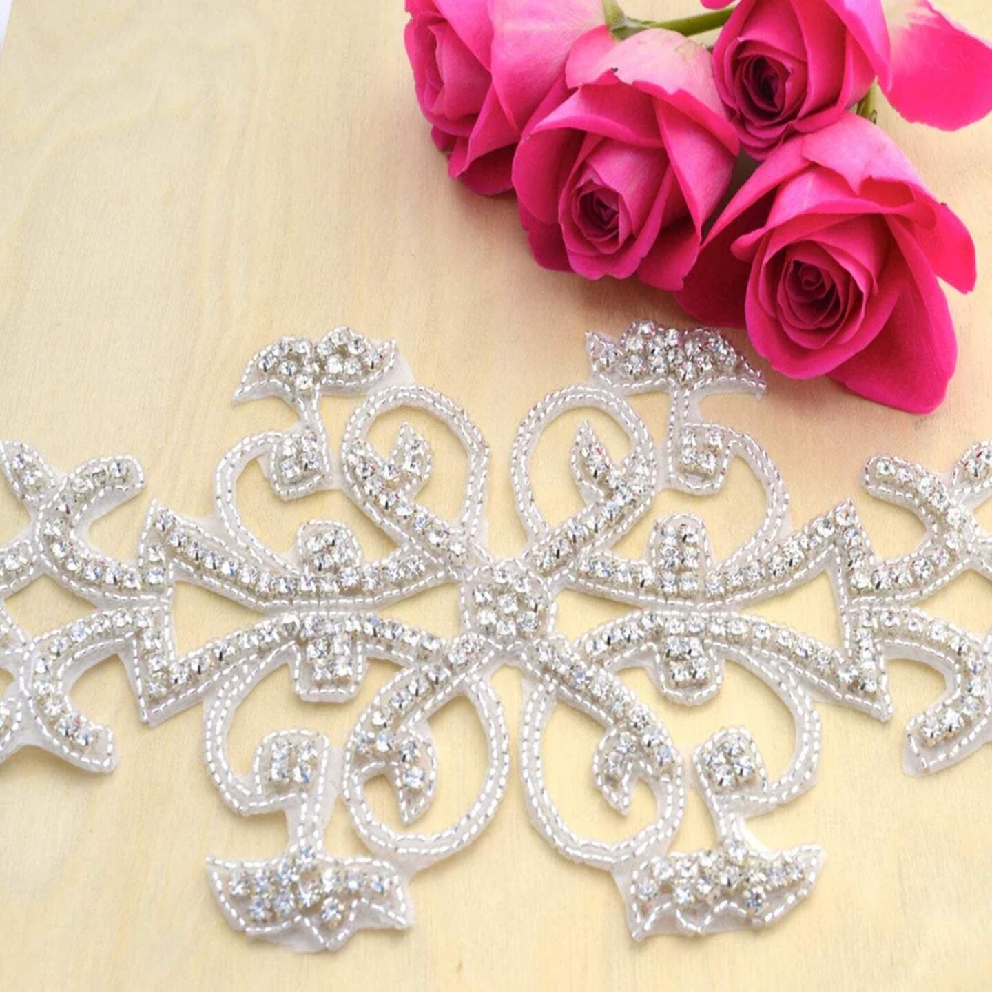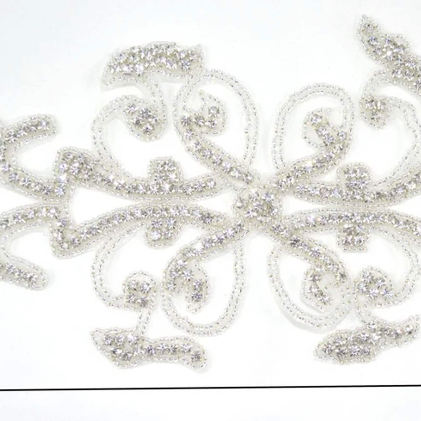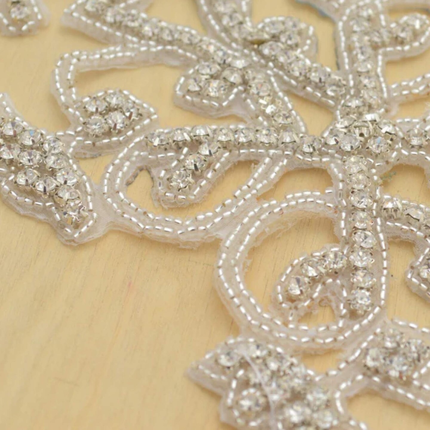 9.2" x 4.9" Large Silver Rhinestone Applique Iron On Beaded Patch for Wedding Dress Decoration