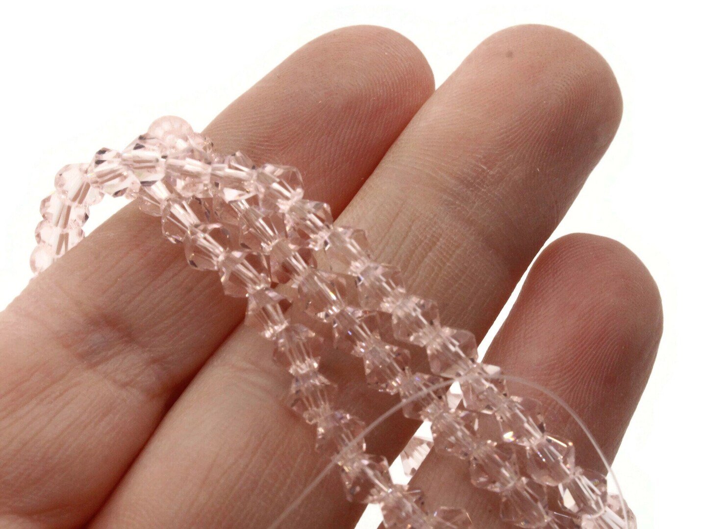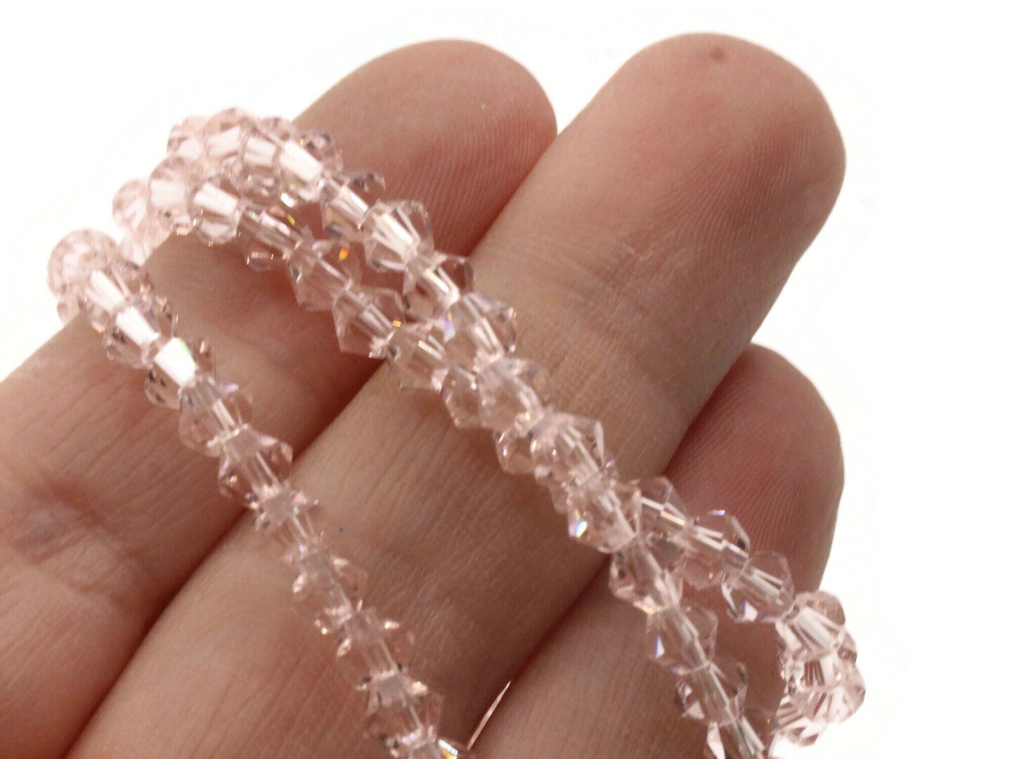 93 4mm Pink Glass Bicone Beads Full Strand