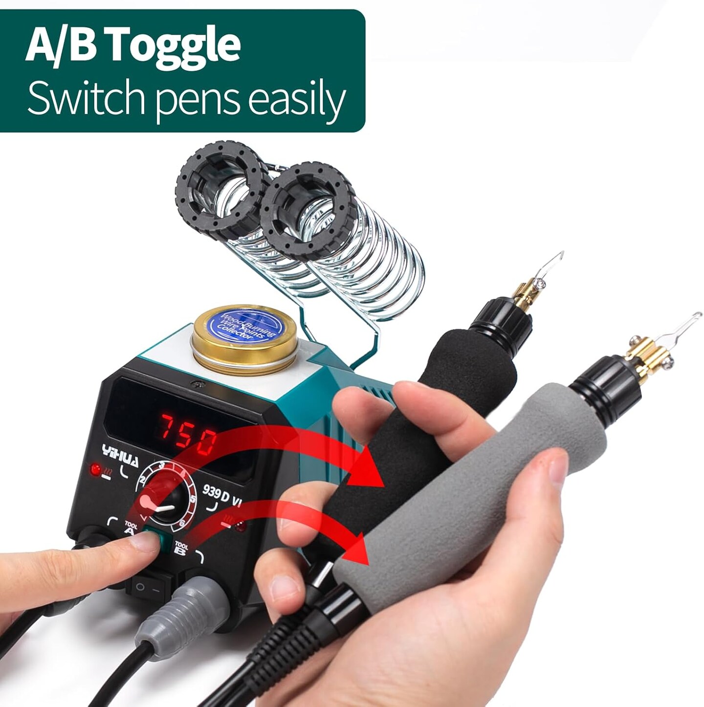939D-VI Dual Pen Wood Burning Kit – Digital Display, Detachable Pens, 20 Nibs, 2 Wood Pieces & Tweezers.